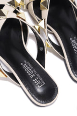 Katrinka Open Toe Padlock Detail Wide-Leg Stiletto Boots - Beige
