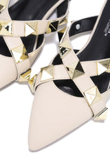 Mariposa Rhinestone Floral Embellished Stiletto High Heel Sandals - Beige