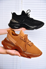 Heath Low Top Lug Sole Thick Lace Flat Sneaker - Black