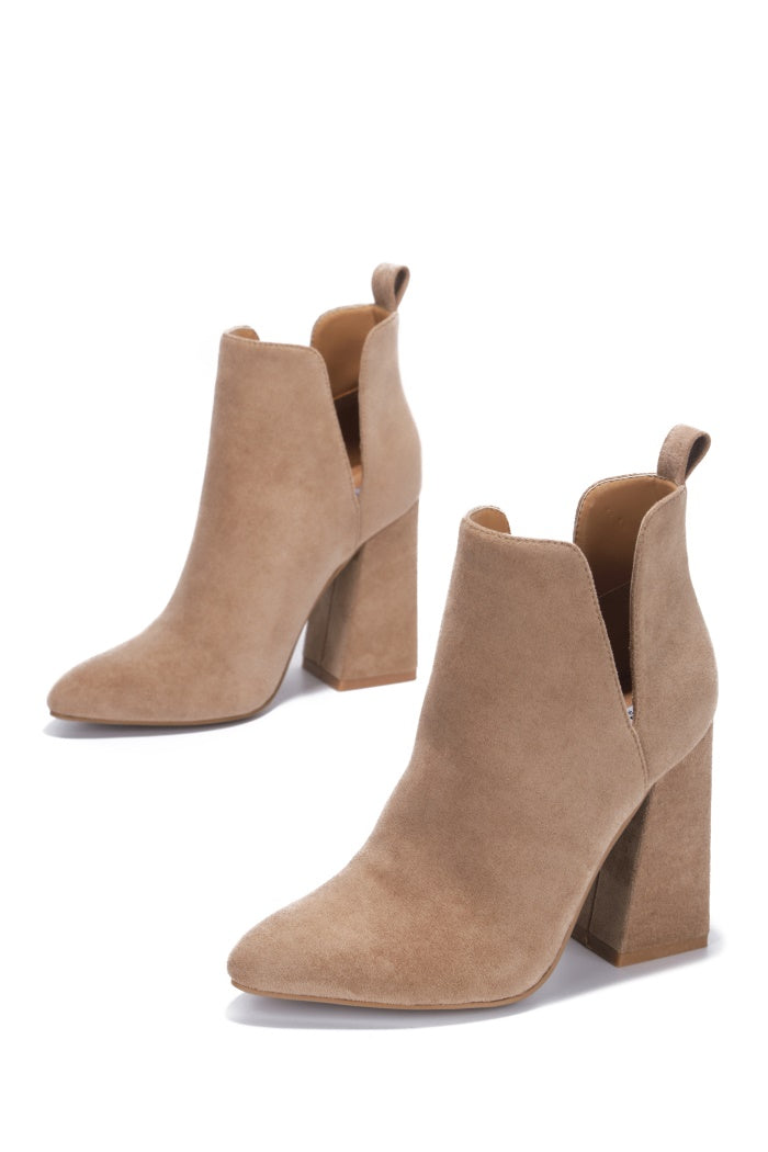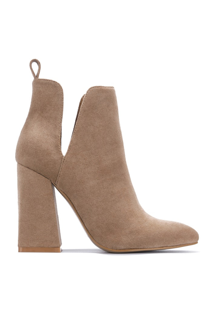 Prague Rhinestone Heel Suede Ankle Booties - Taupe