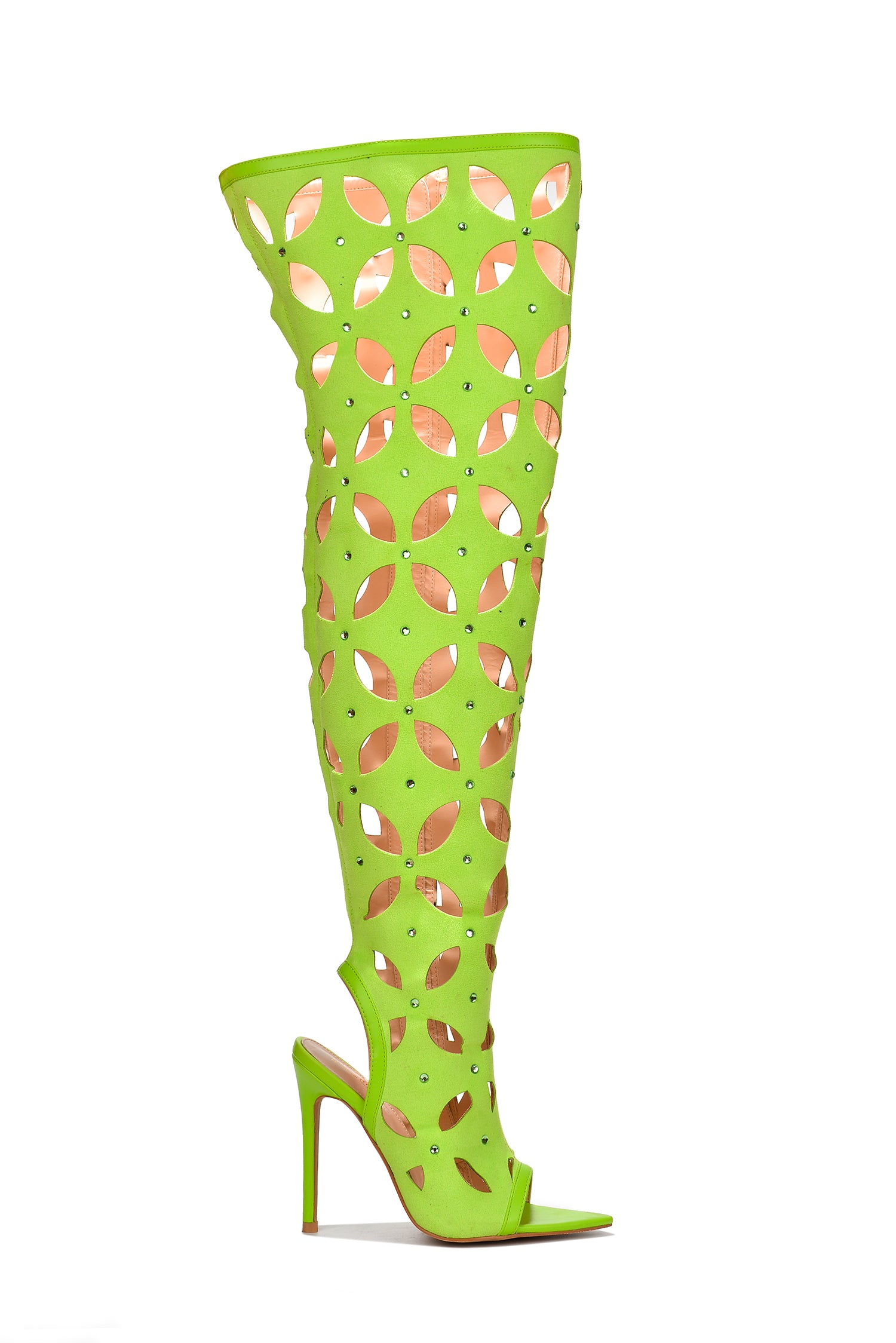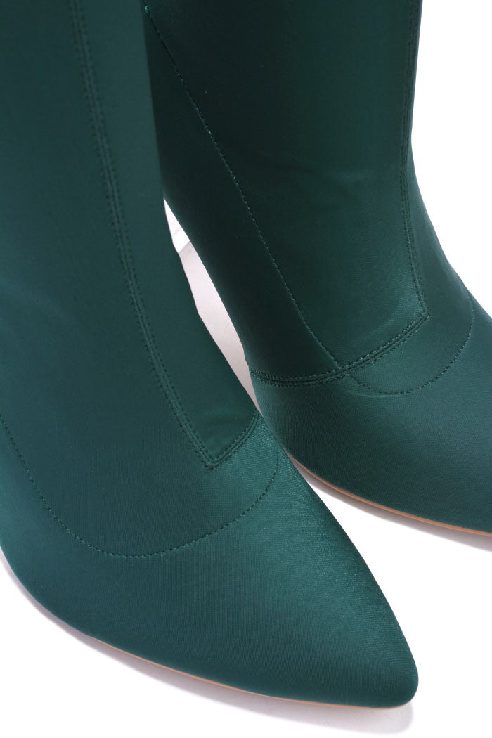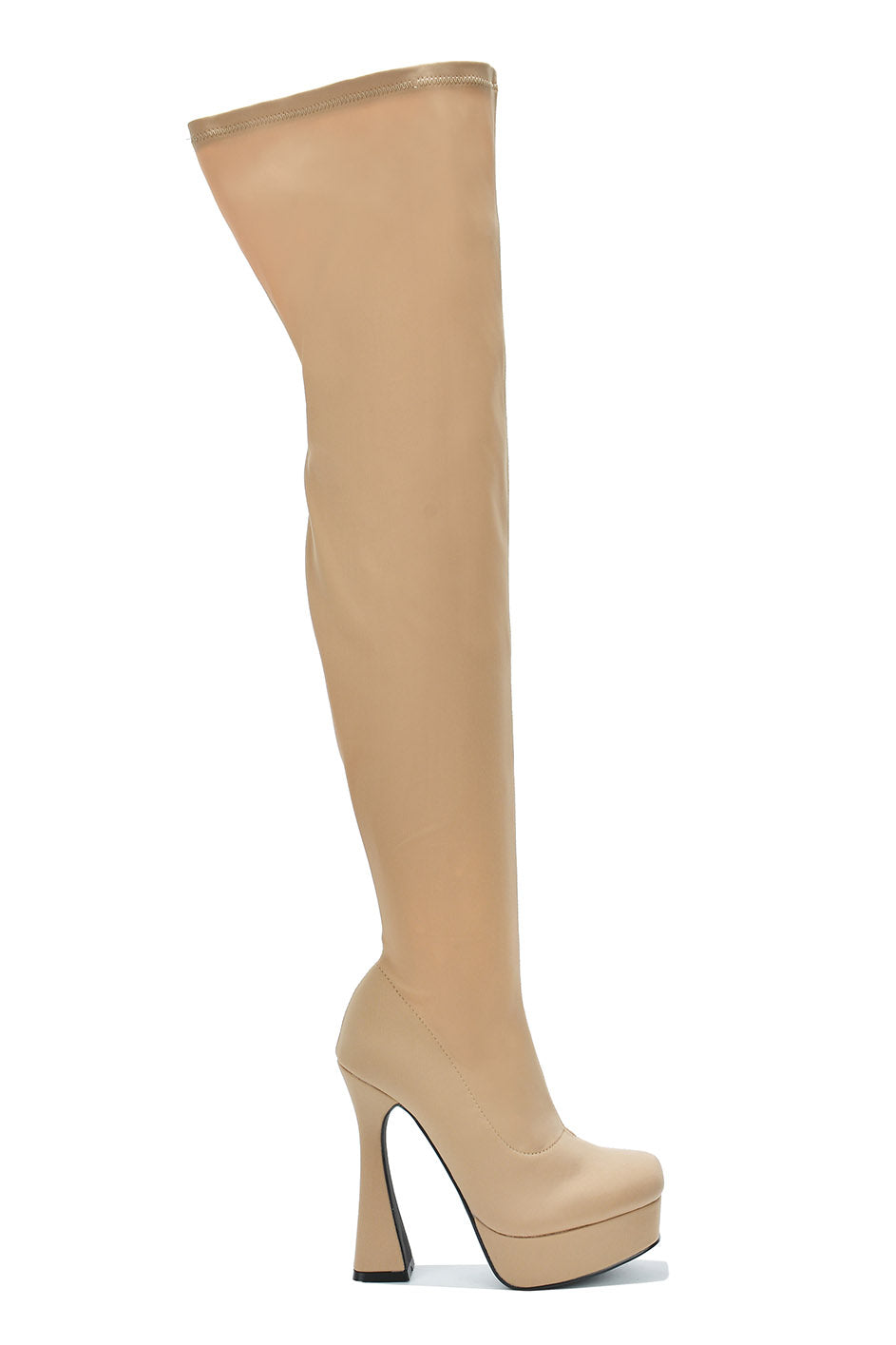 Estele Clear Pointy Toe Thigh High Boots - Taupe