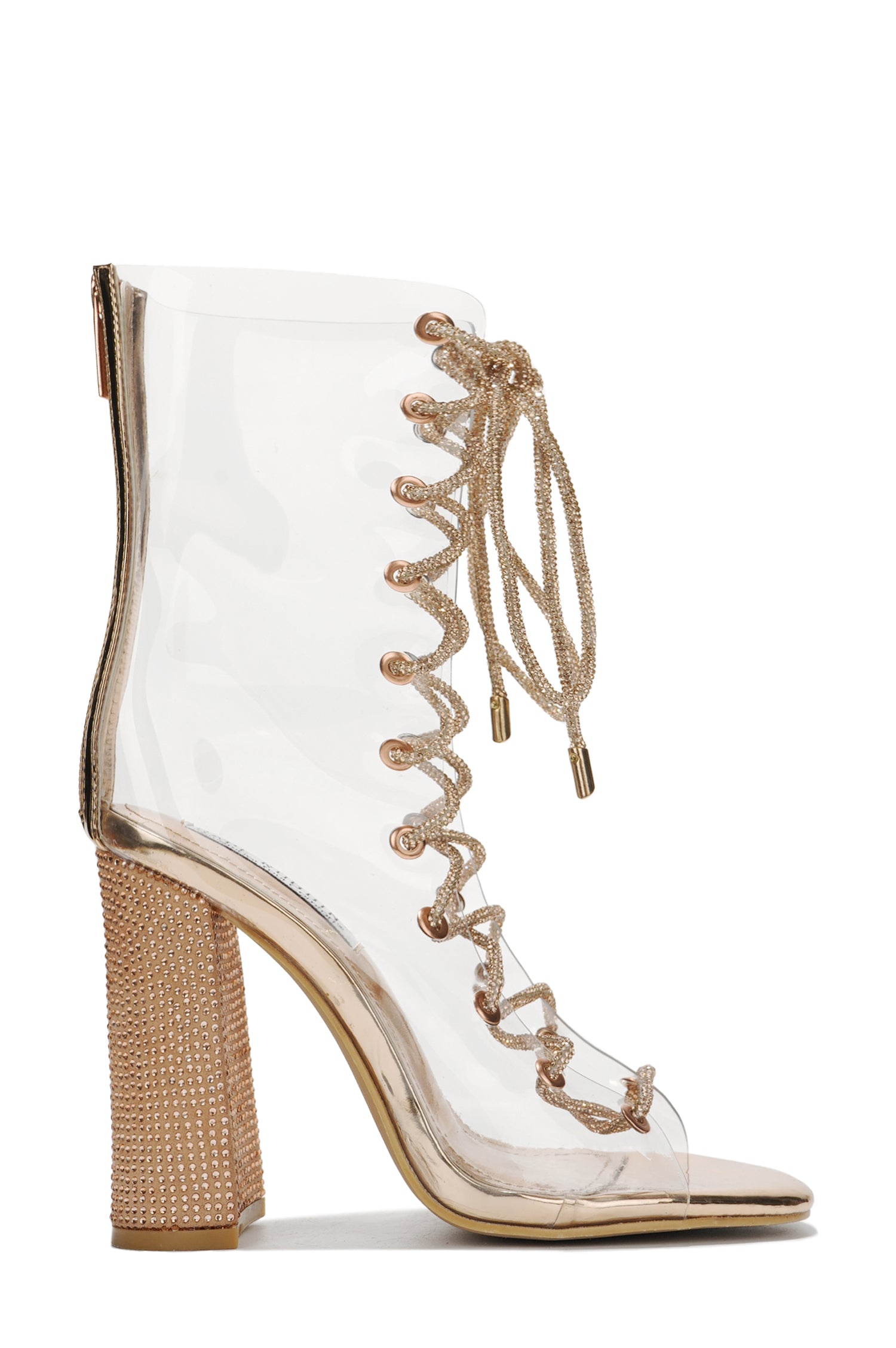 Kastel Denim Rainbow Rhinestone Platform Boots - Denim