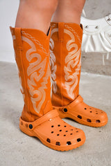 Malinde Rhinestone Embelished Western Inpired Knee High Boots - Gold