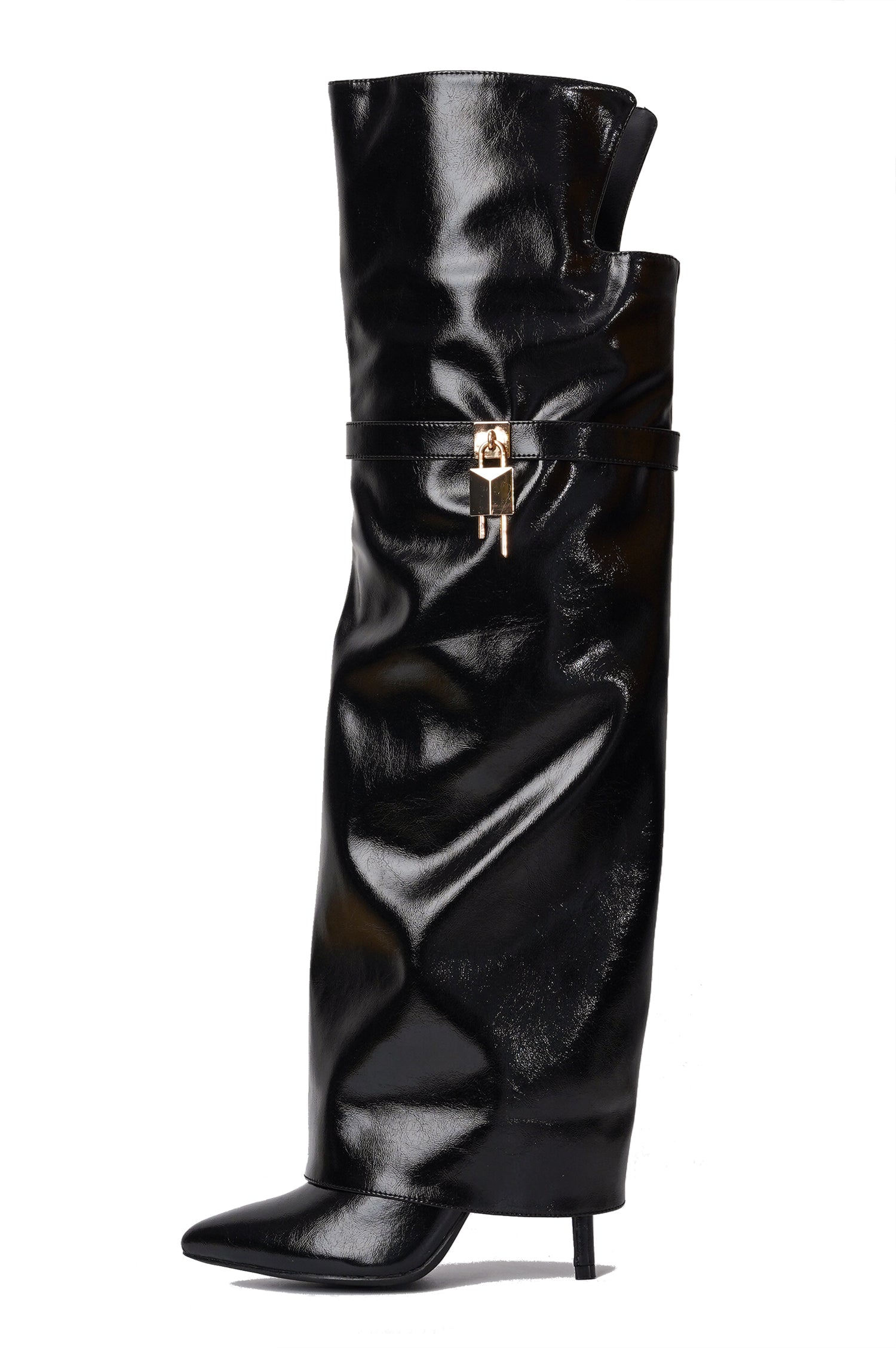 Pofin-2 Metallic Thigh High Pointy Toe Boots - Gold