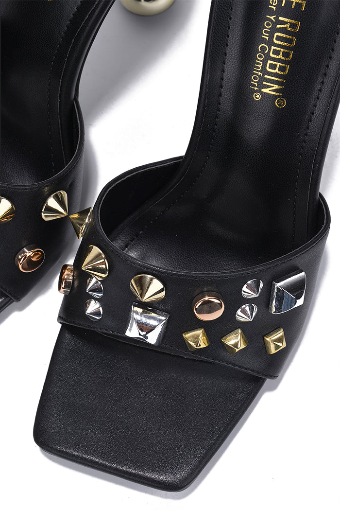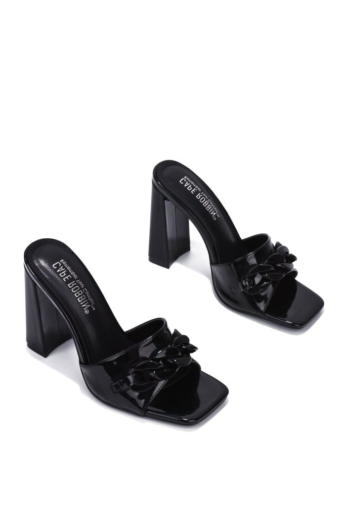 Carlene Metallic Faux Leather Slip-on Heel Sandals - Black