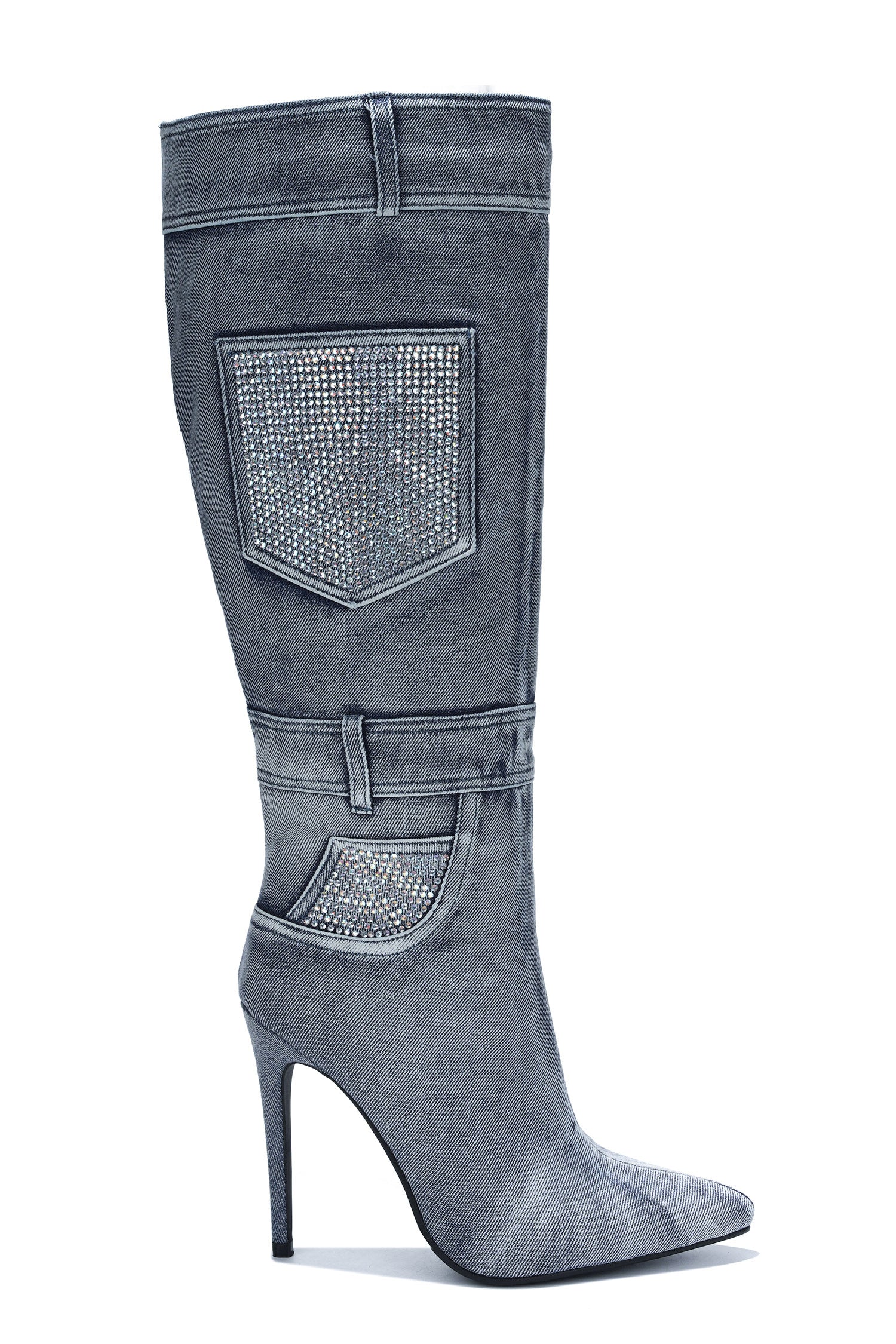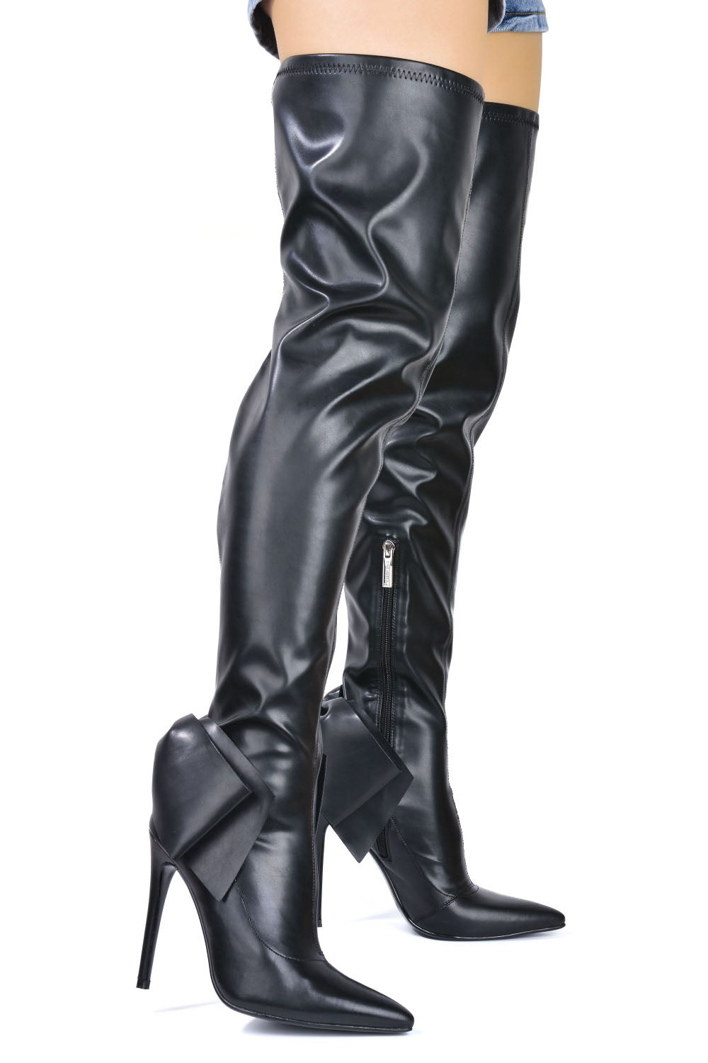 Kuri Rhinestone-Lined Thigh High Boots - Black