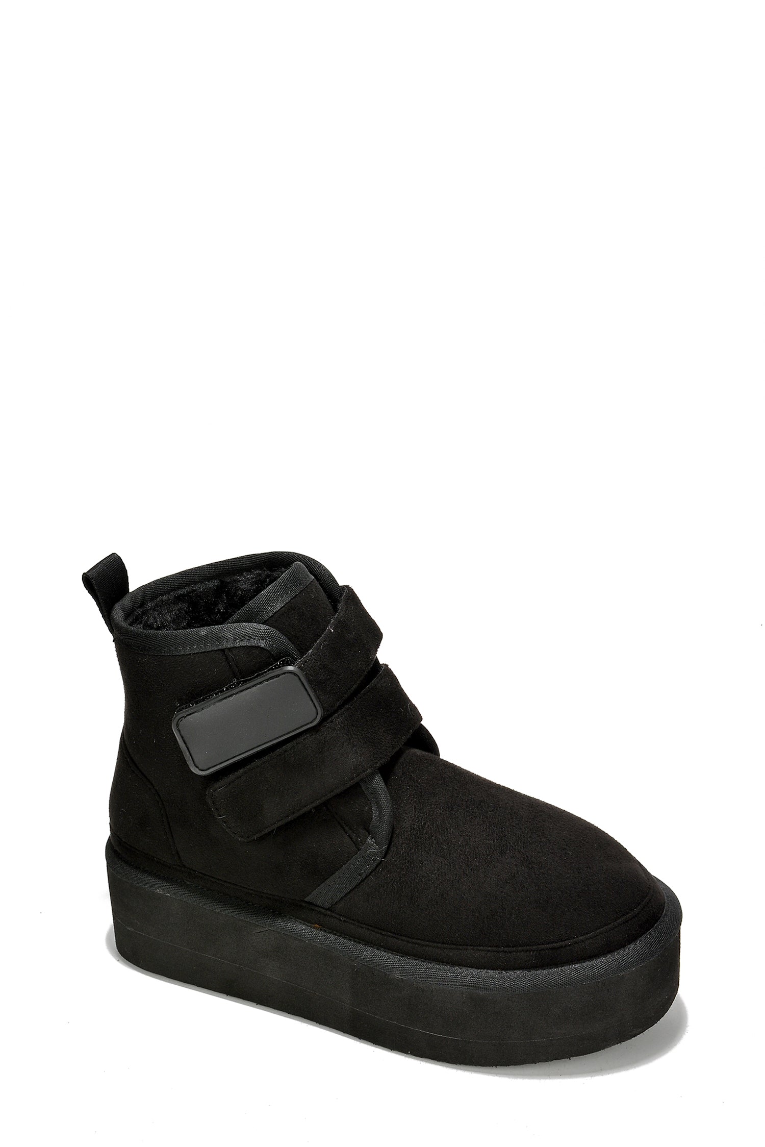 Elarahh Belt Buckle Open Round Toe Heel Boots - Black