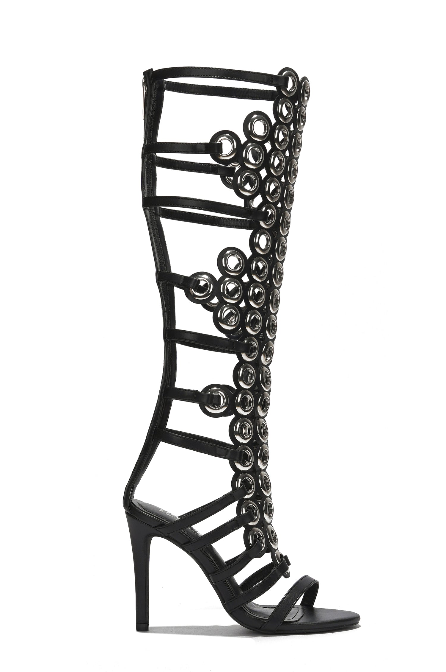 Dyana Shimmering Wraparound Strappy Stiletto Heels - Black
