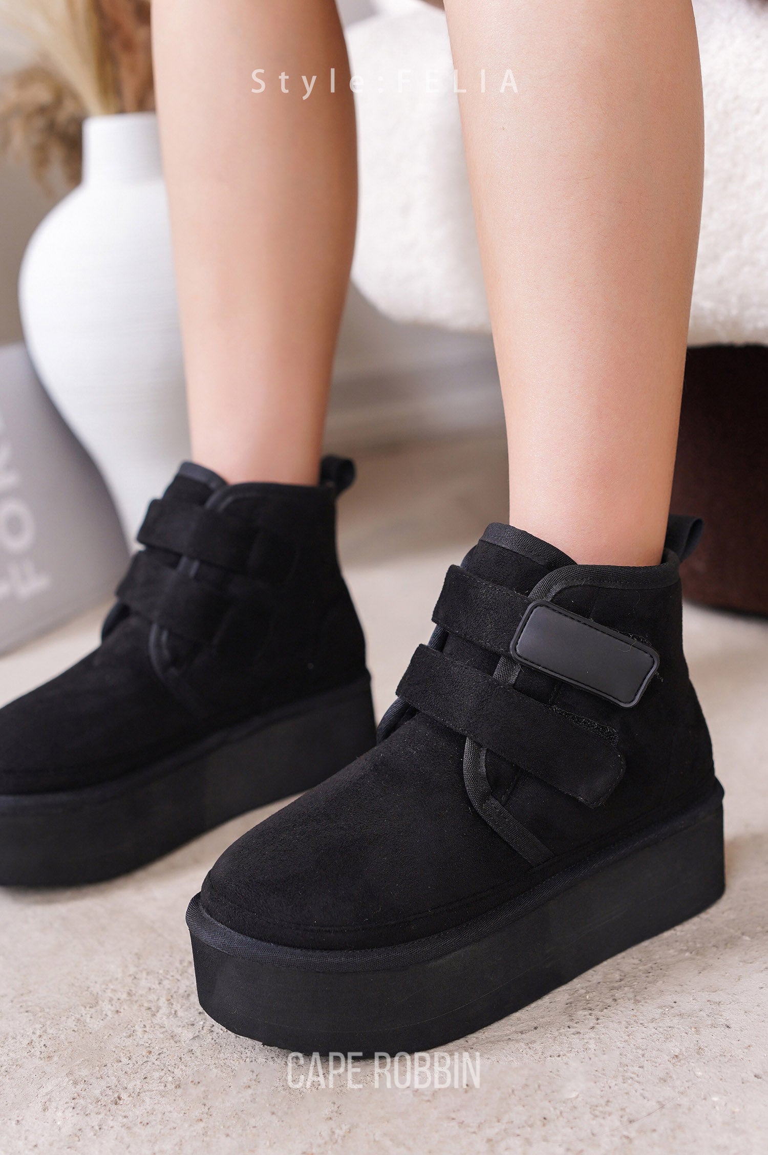 Looks Chunky Sole Thigh High Denim Sneakers - Black