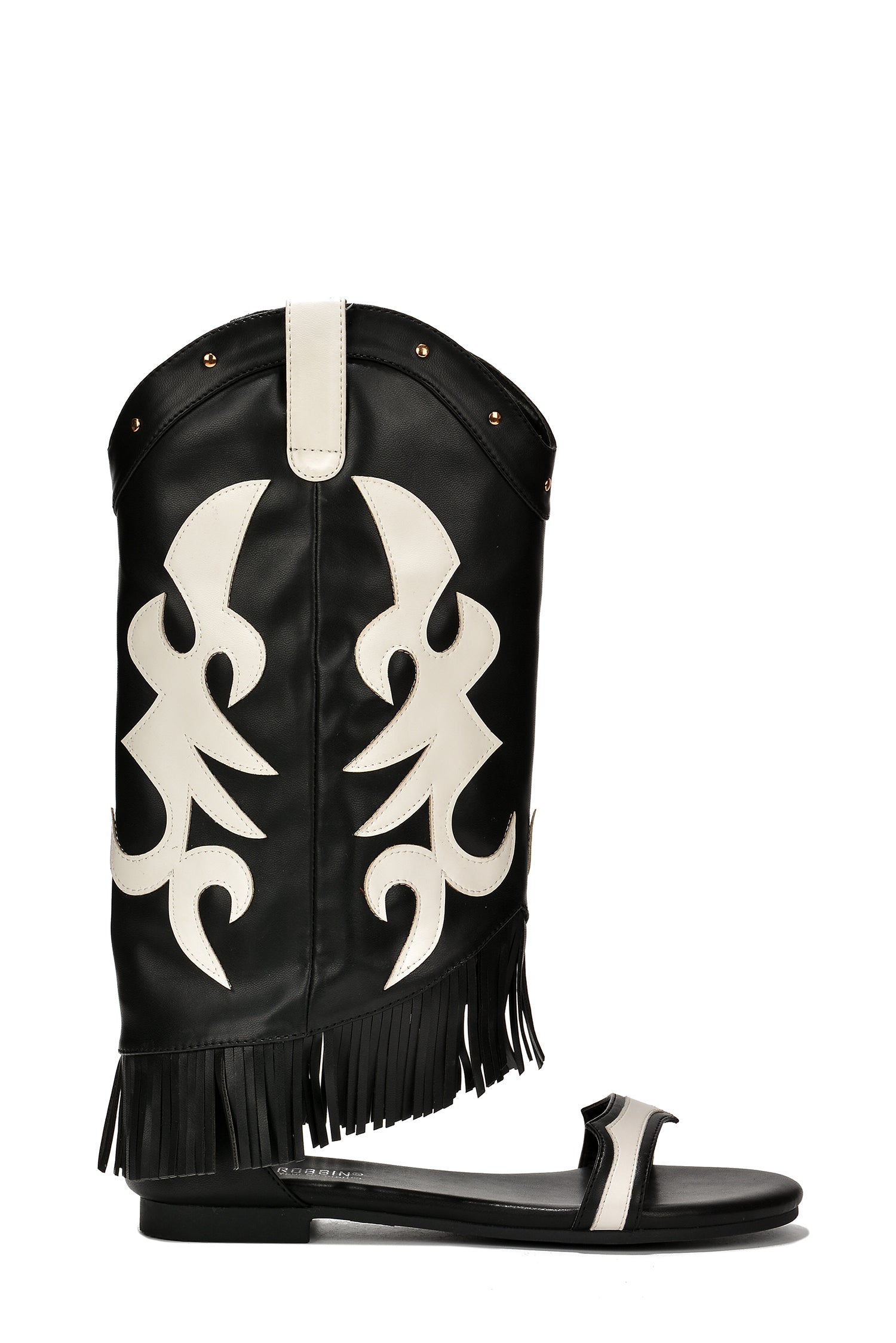 Marisa Knit Crochet Tassels Open Toe Heels - Black