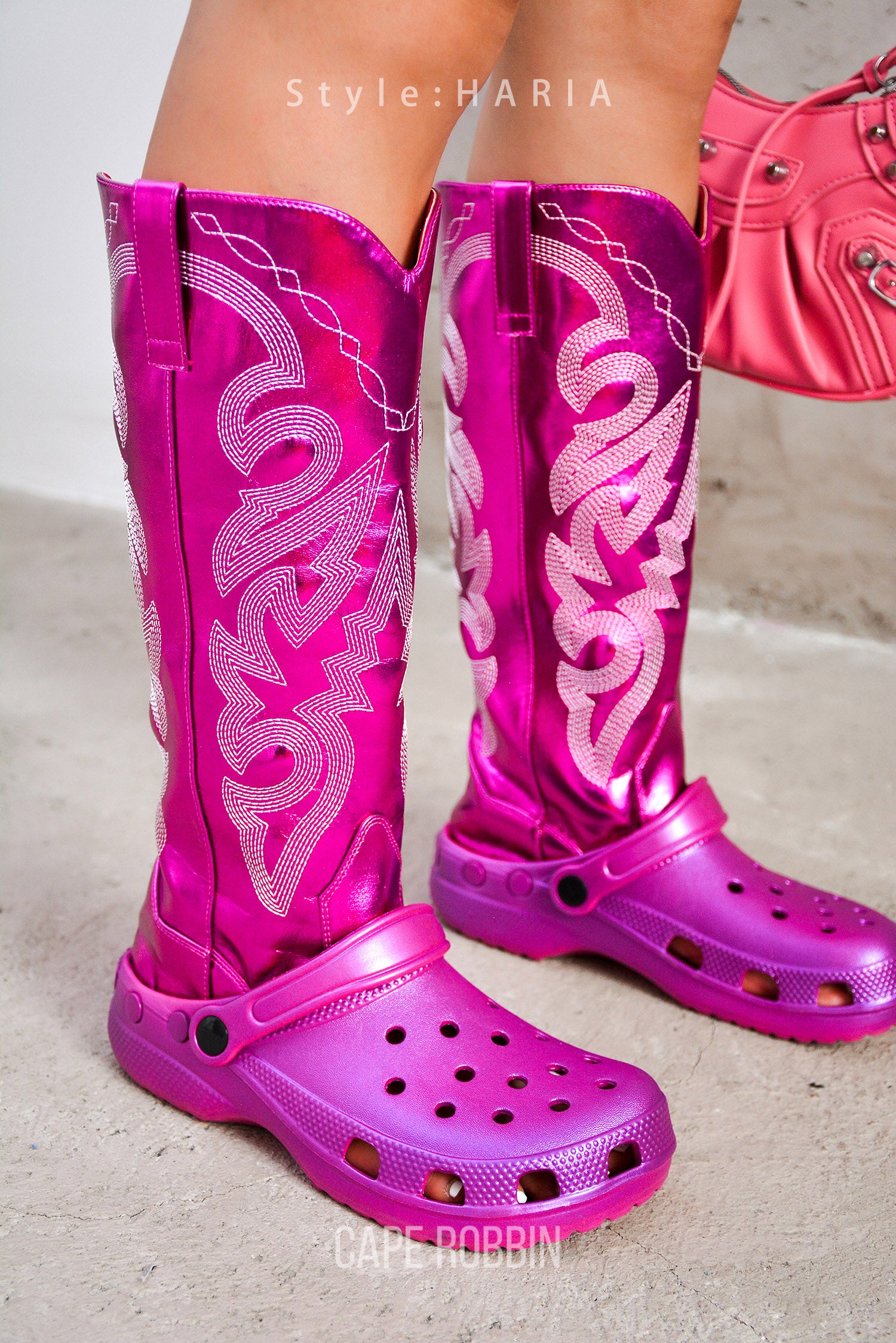 Coraline Rhinestone-Coated Thigh High Boots - Print