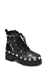Hanarin Metallic Mid Block Heel Booties - Silver