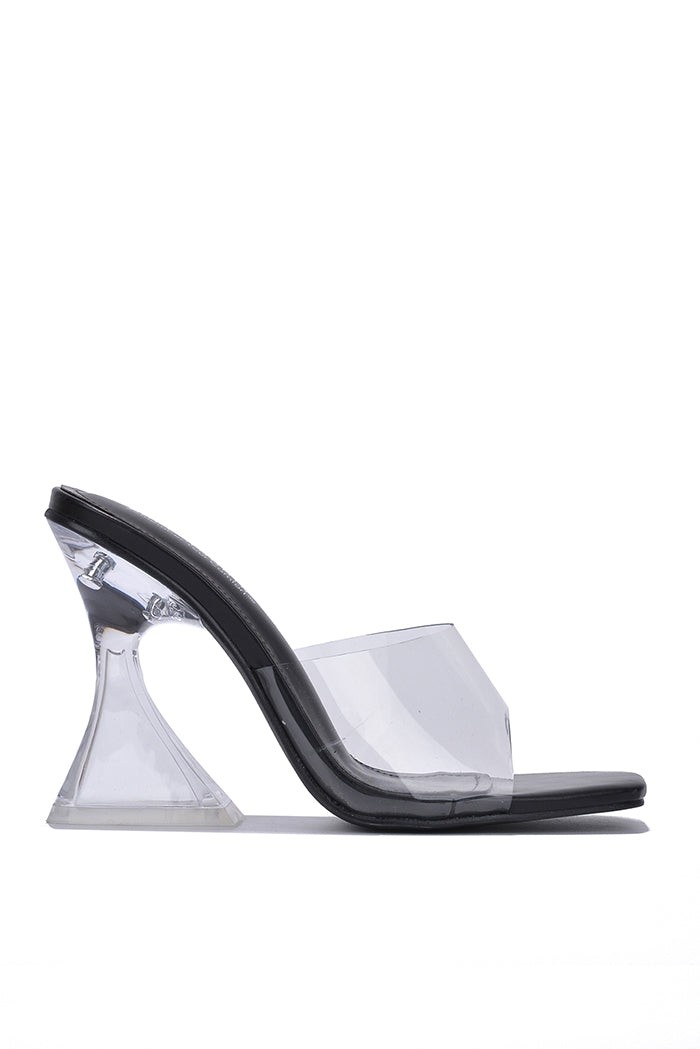 Berry Slip-on Pointy Toe Heels With Clear Upper - Black