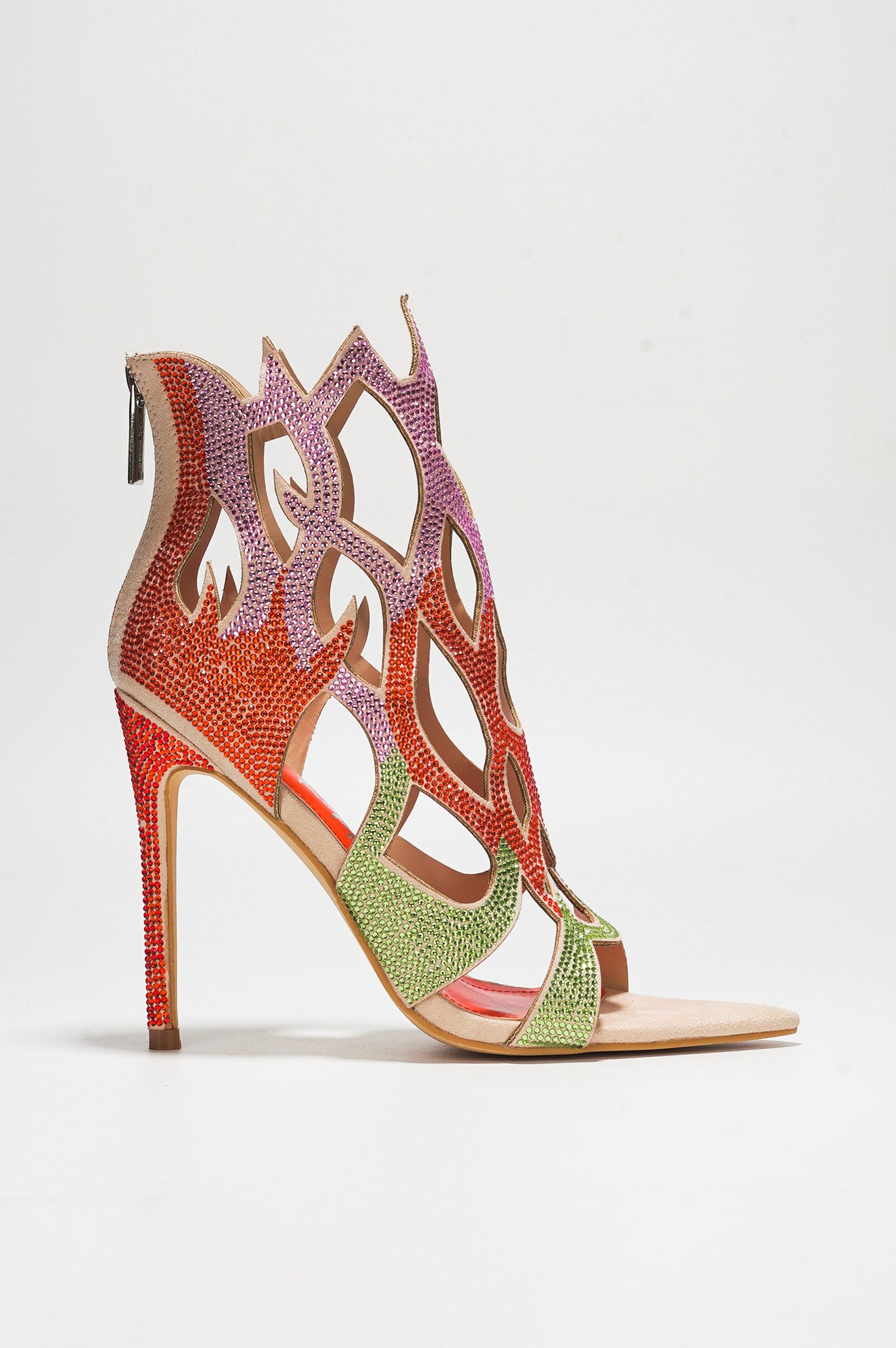 Vitoria Rhinestone Flame Cut-Out Pointy Heels - Black