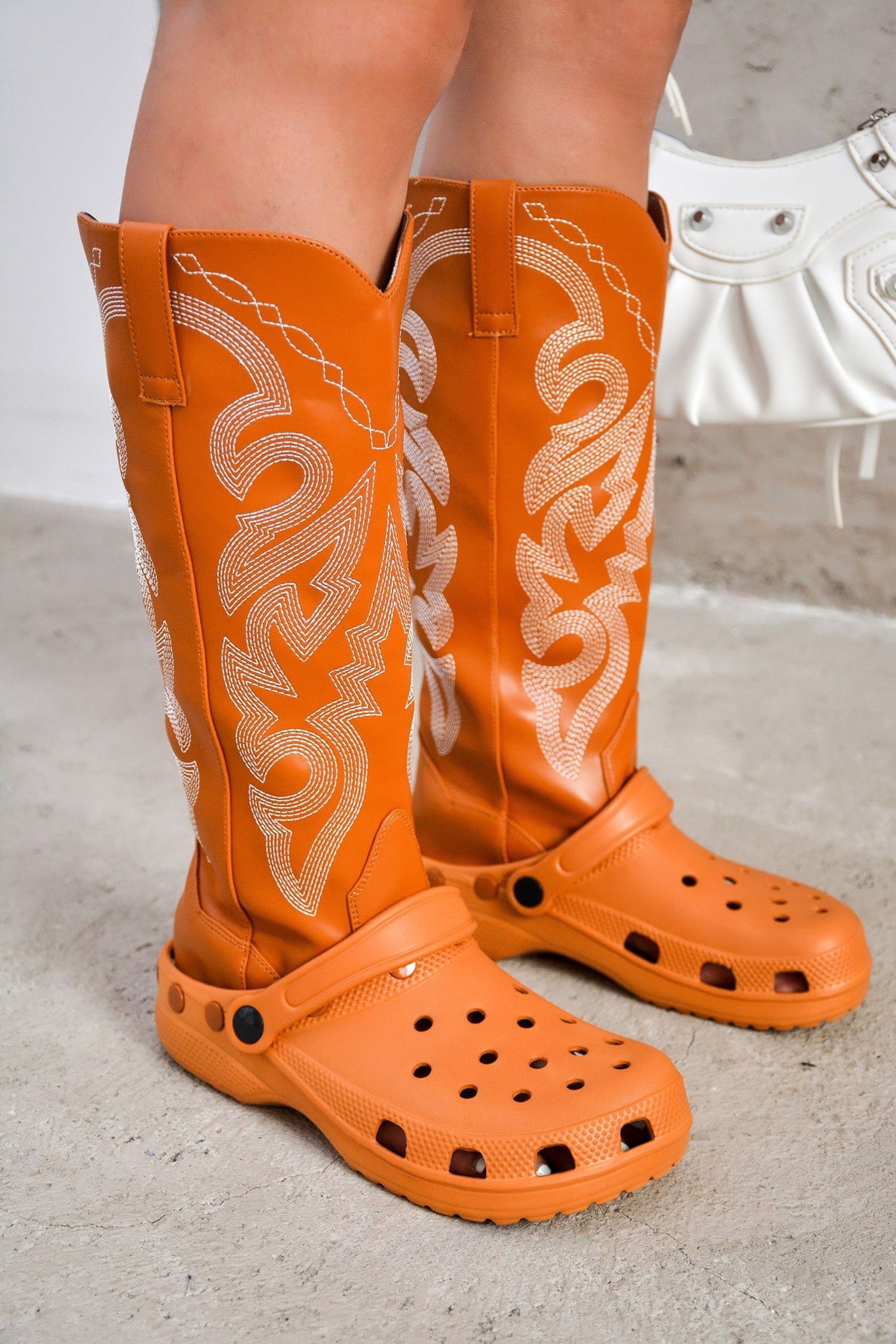 Juliana Metallic Color Block Western Cowboy Boots - Orange