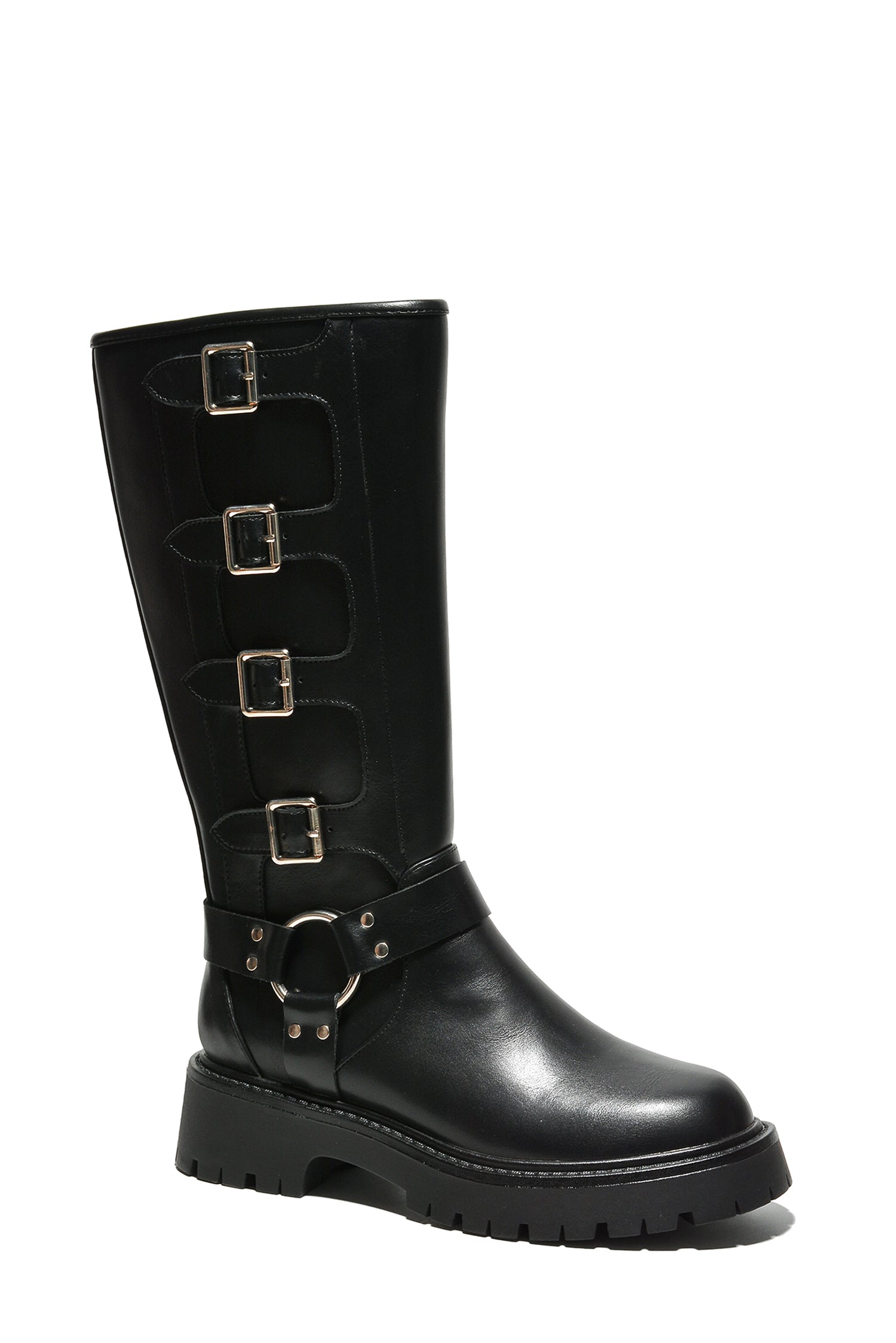 Katrinka Open Toe Padlock Detail Wide-Leg Stiletto Boots - Black