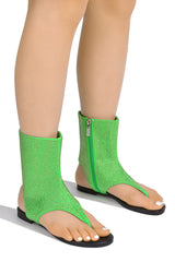 Vijaya Glossy Lycra Thigh High Sandals - Green
