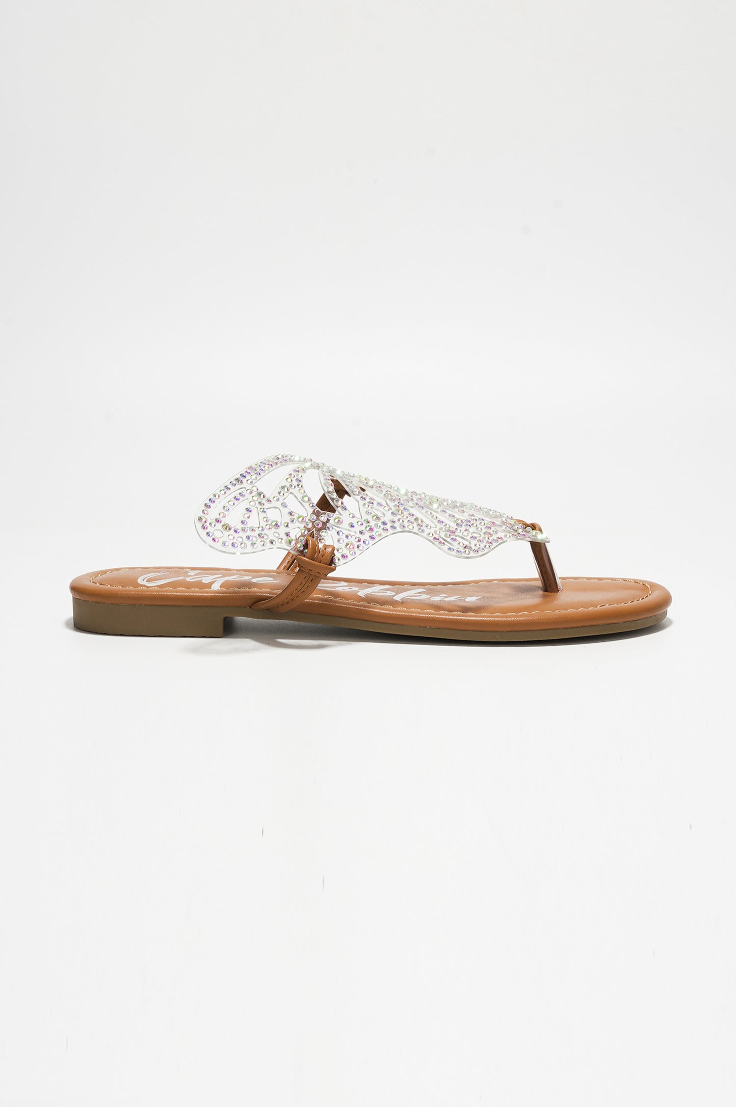 Ribbona Rhinestone Bow Slide Sandals - Beige