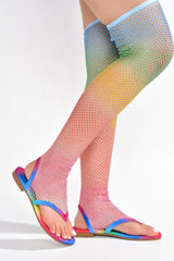 Hude Rhinestone Mesh Thigh High Flat Sandals - Black