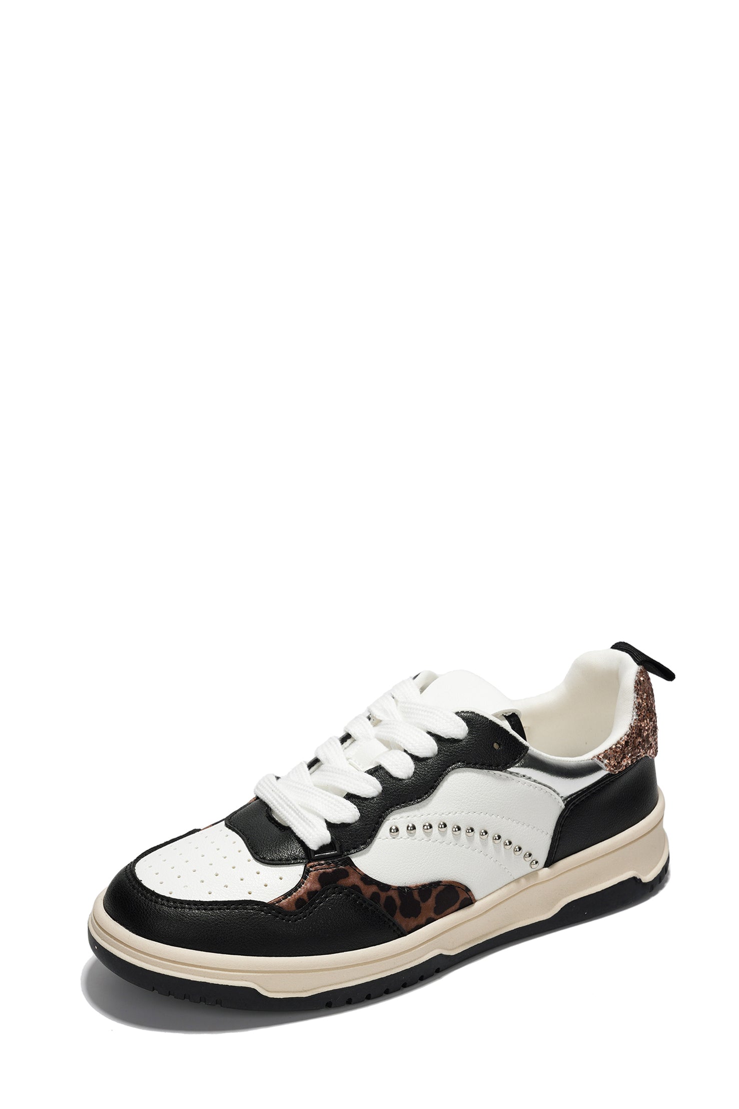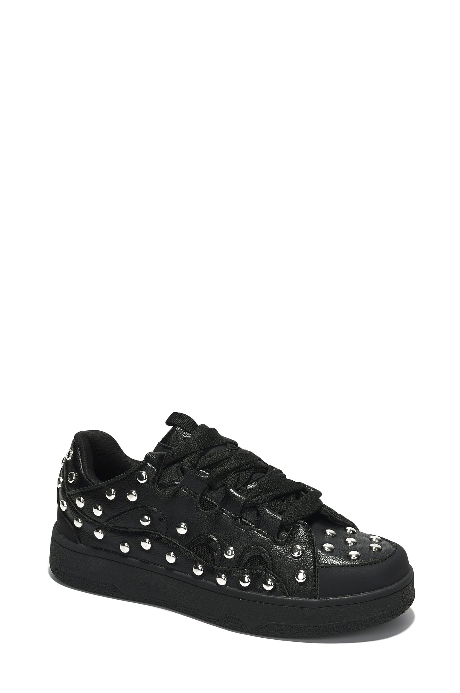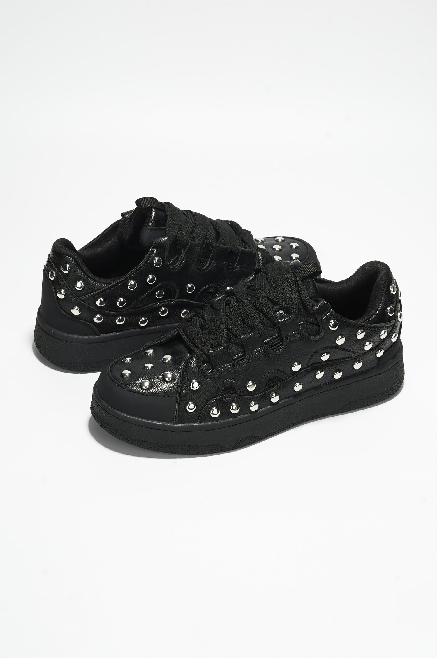 Heath Low Top Lug Sole Thick Lace Flat Sneaker - Black
