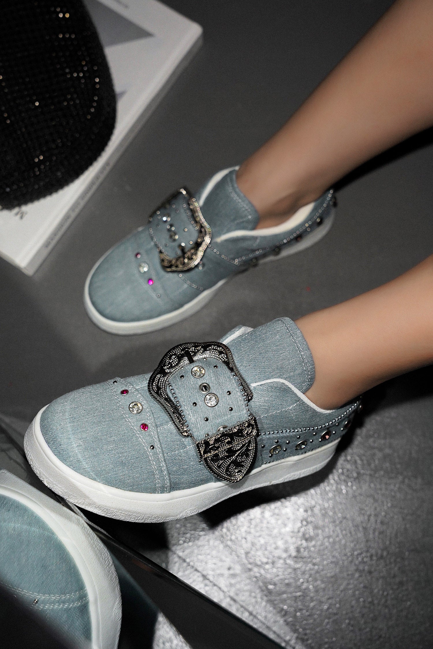 Looks Chunky Sole Thigh High Denim Sneakers - Denim