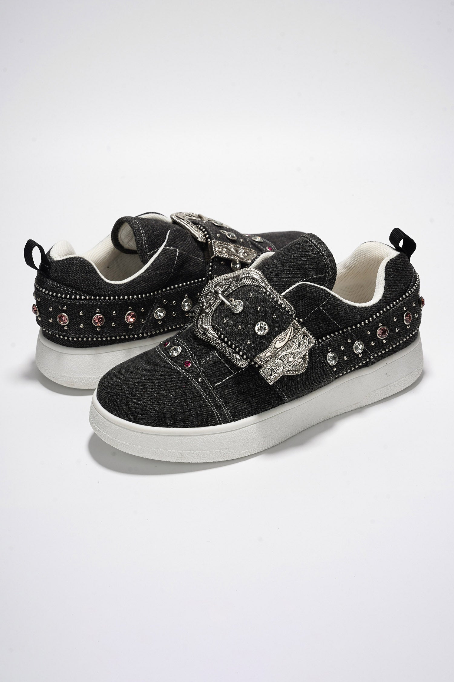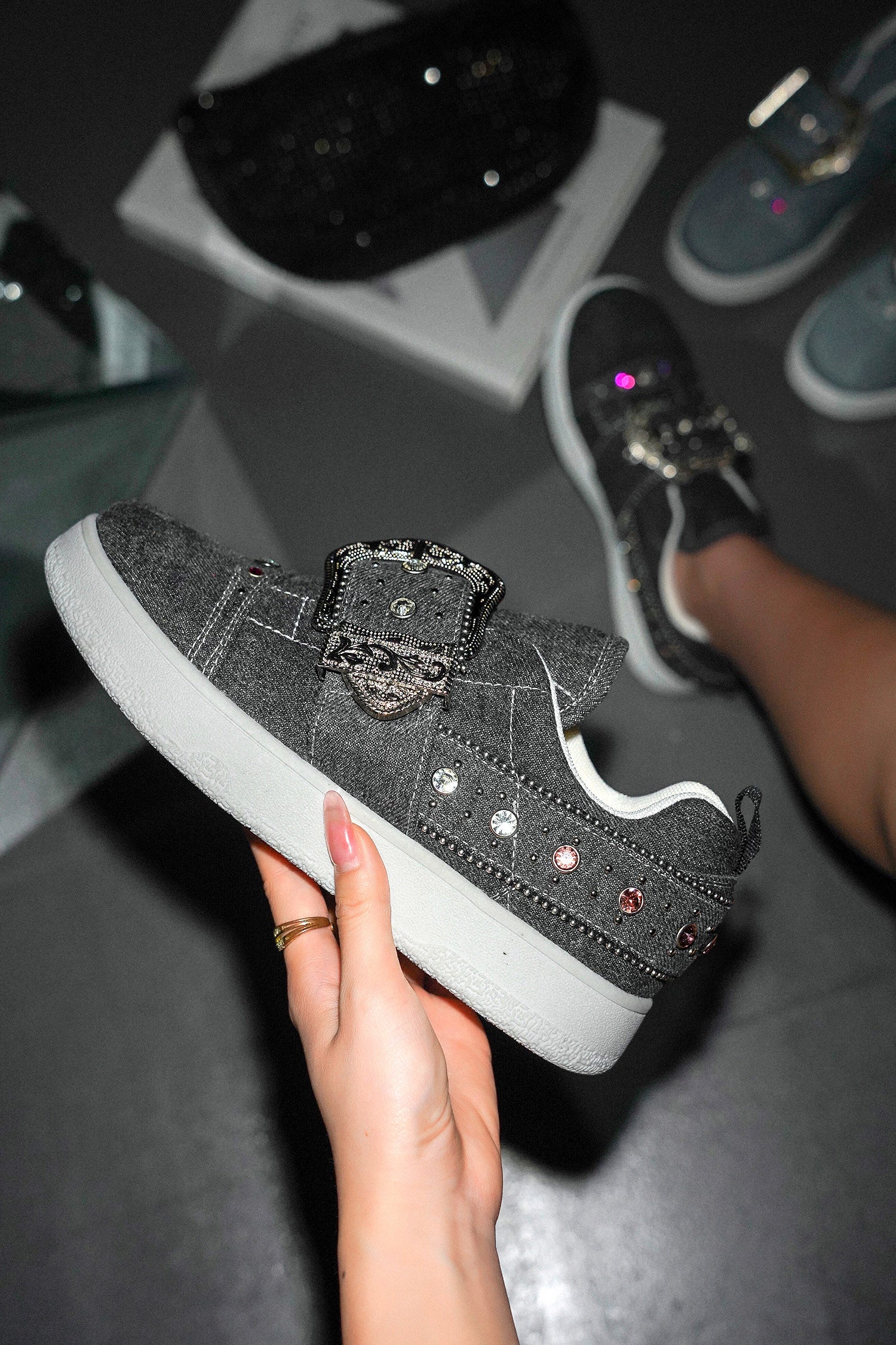 Step up your style game with the Audra Denim Sneakers, where comfort meets chic design. These standout sneakers feature a unique denim upper adorned with an eye-catching decorative buckle, blending casual ease with a touch of elegance. Imagine yourself strolling through the city, catching up with friends, or running errands in utmost comfort and style. The Audra Denim Sneakers seamlessly integrate into your daily life, providing both the comfort you need and the style you crave.