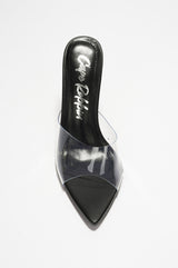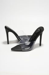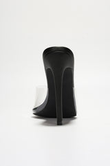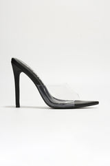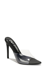 Berry Slip-on Pointy Toe Heels With Clear Upper - Black