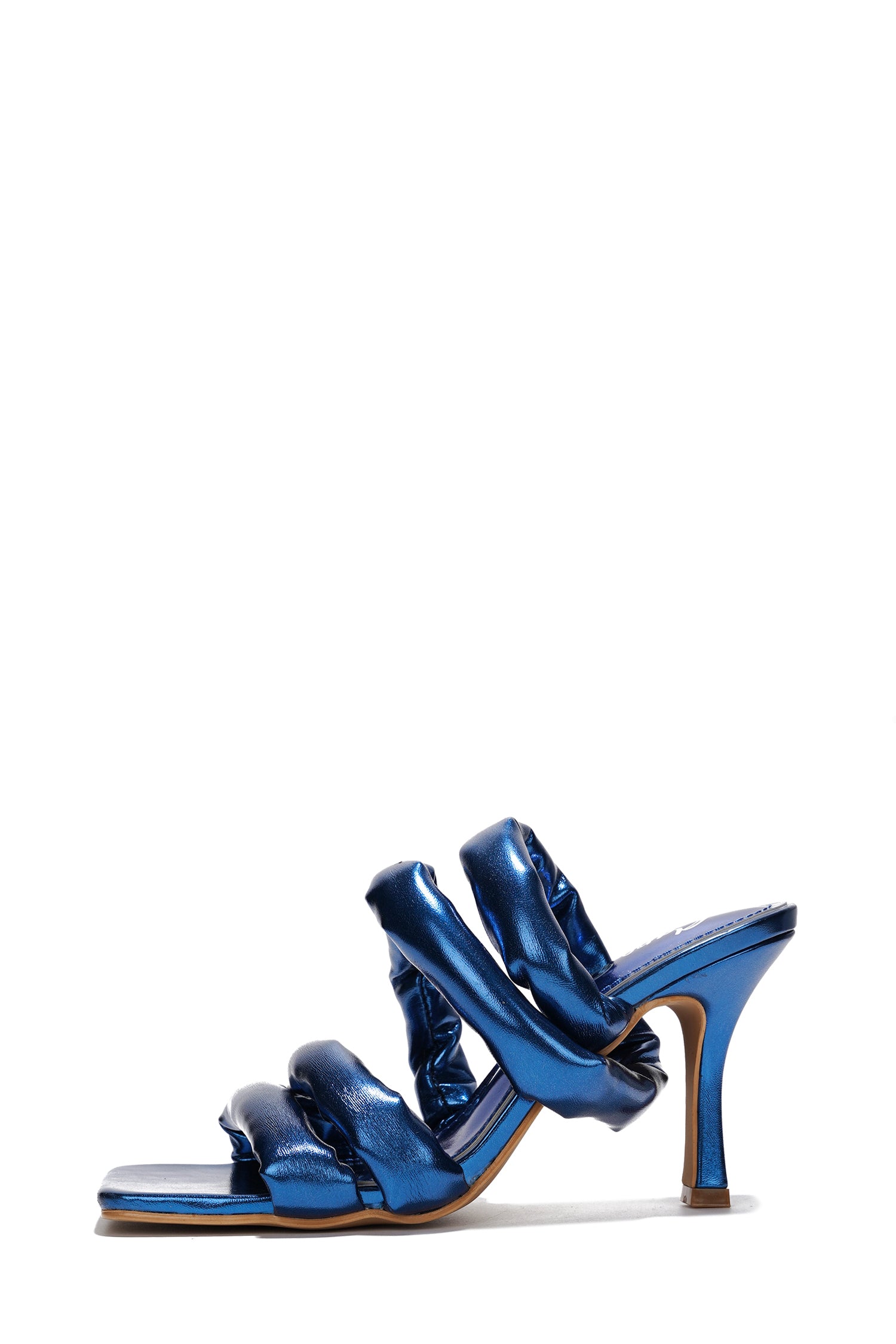 Carlene Metallic Faux Leather Slip-on Heel Sandals - Blue