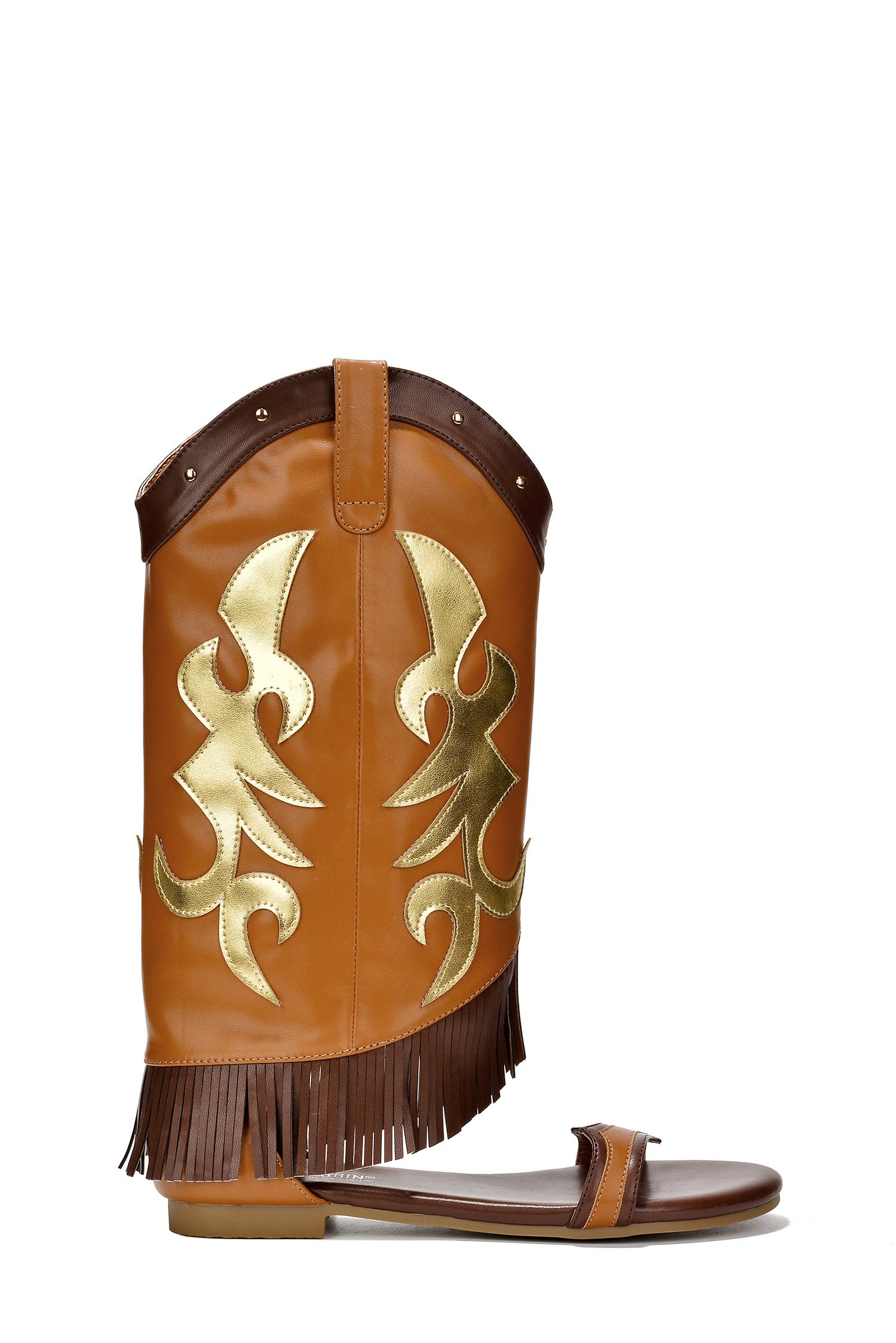 Collins Fringe Western-Inspired Flat Sandals - Brown