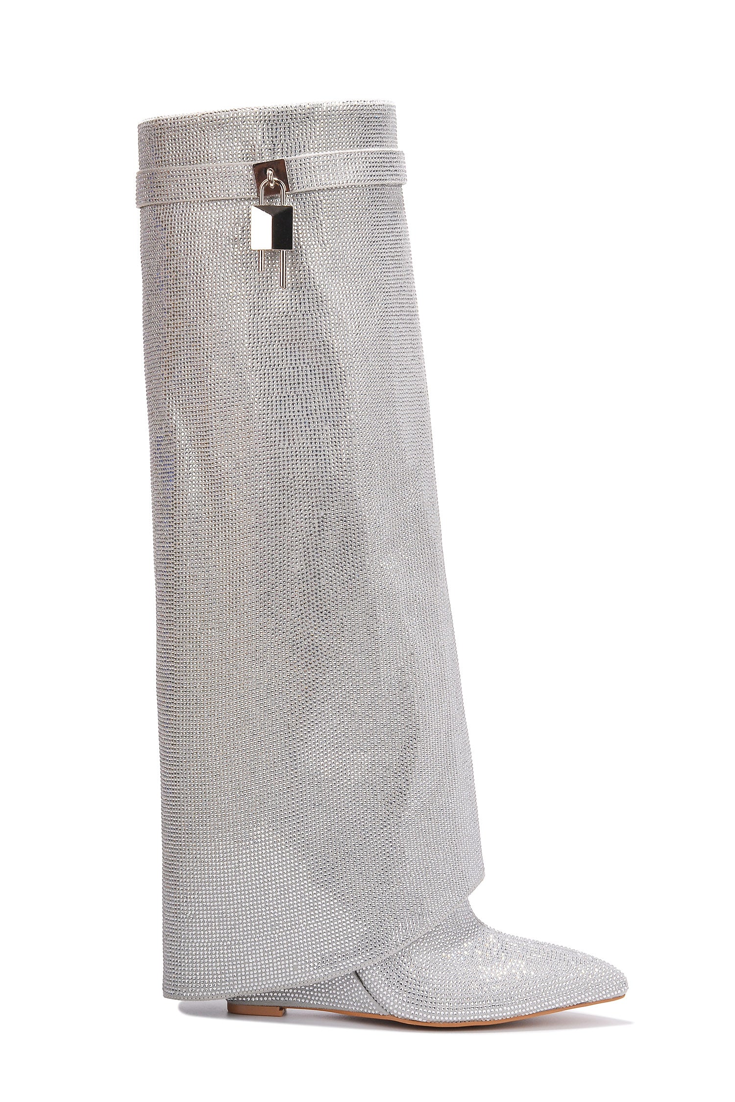 Crara Fold Over Rhinestone Boots - Silver