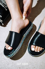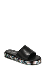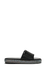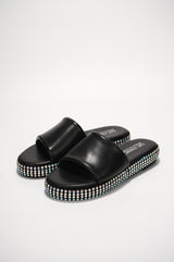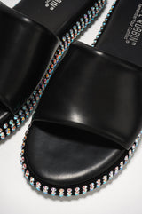 Damdam Rhinestone Coated Slide Sandals - Black