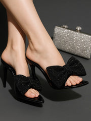 Dania Sparkling Rhinestone Bow Stiletto Heels - Black
