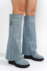 Darin Round Toe Knee-High Platform Boots - Denim