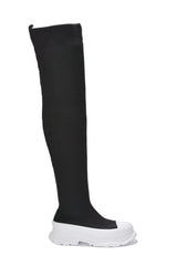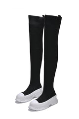 Deky Round Toe Thigh High Sock Boots - Black