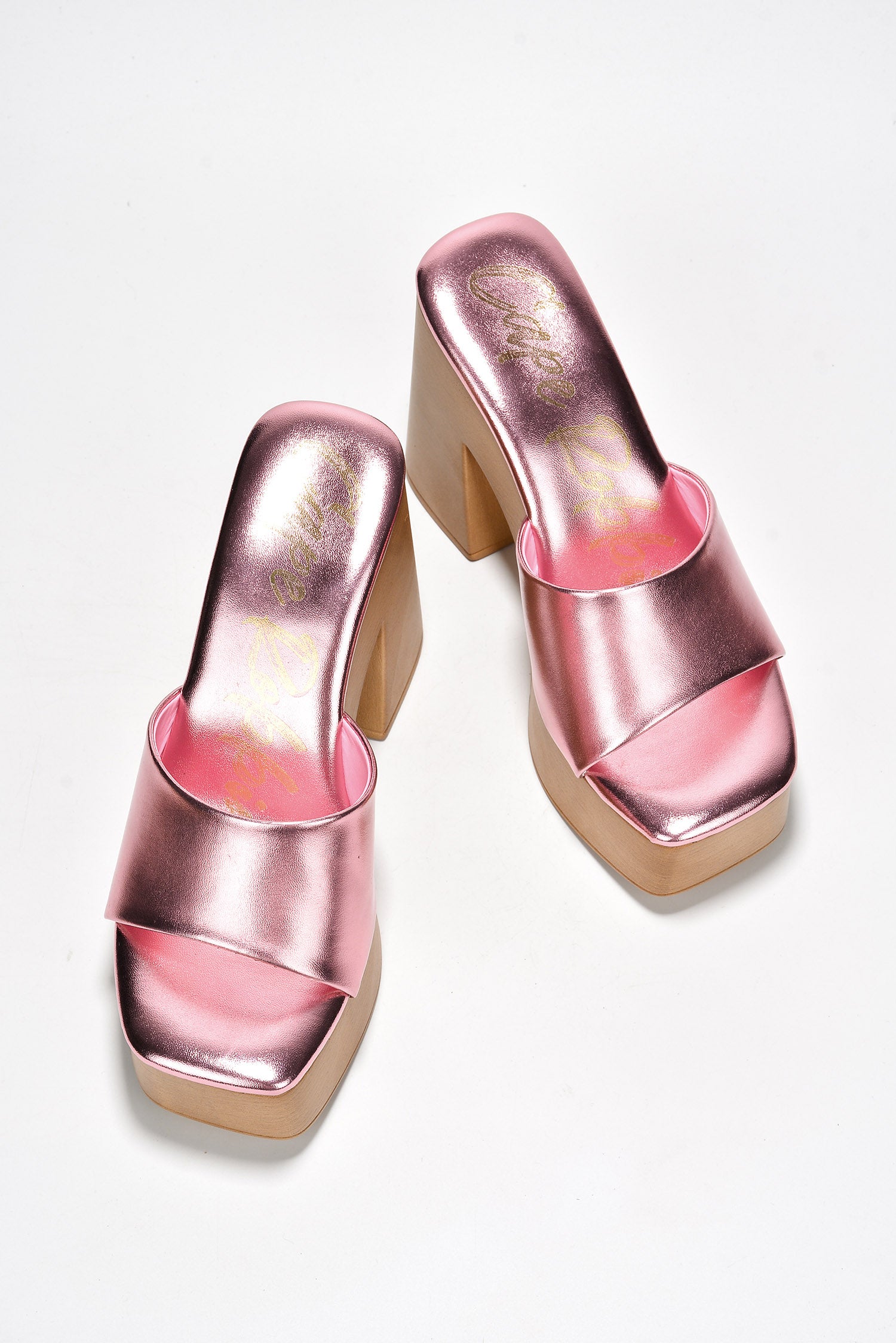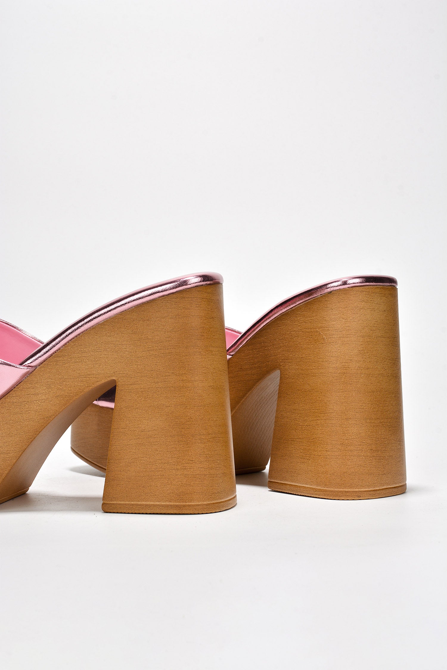 Enisle Cork Metallic Shine High Block Heels - Pink