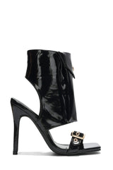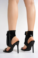 Eveleen Metallic Pouch Ankle Strap Square Toe Heels - Black
