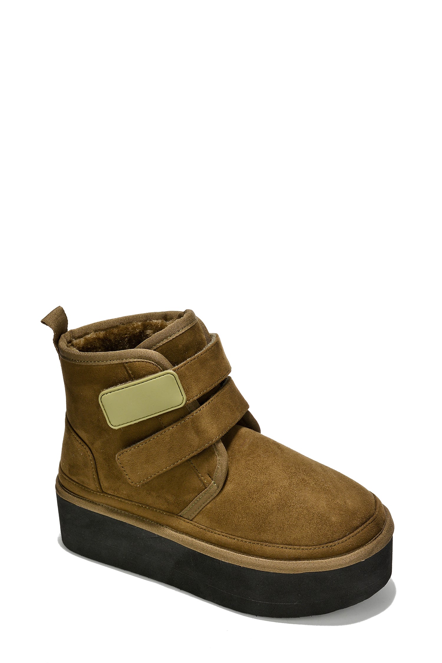 Felia Double Velcro Platform Suede Booties - Olive