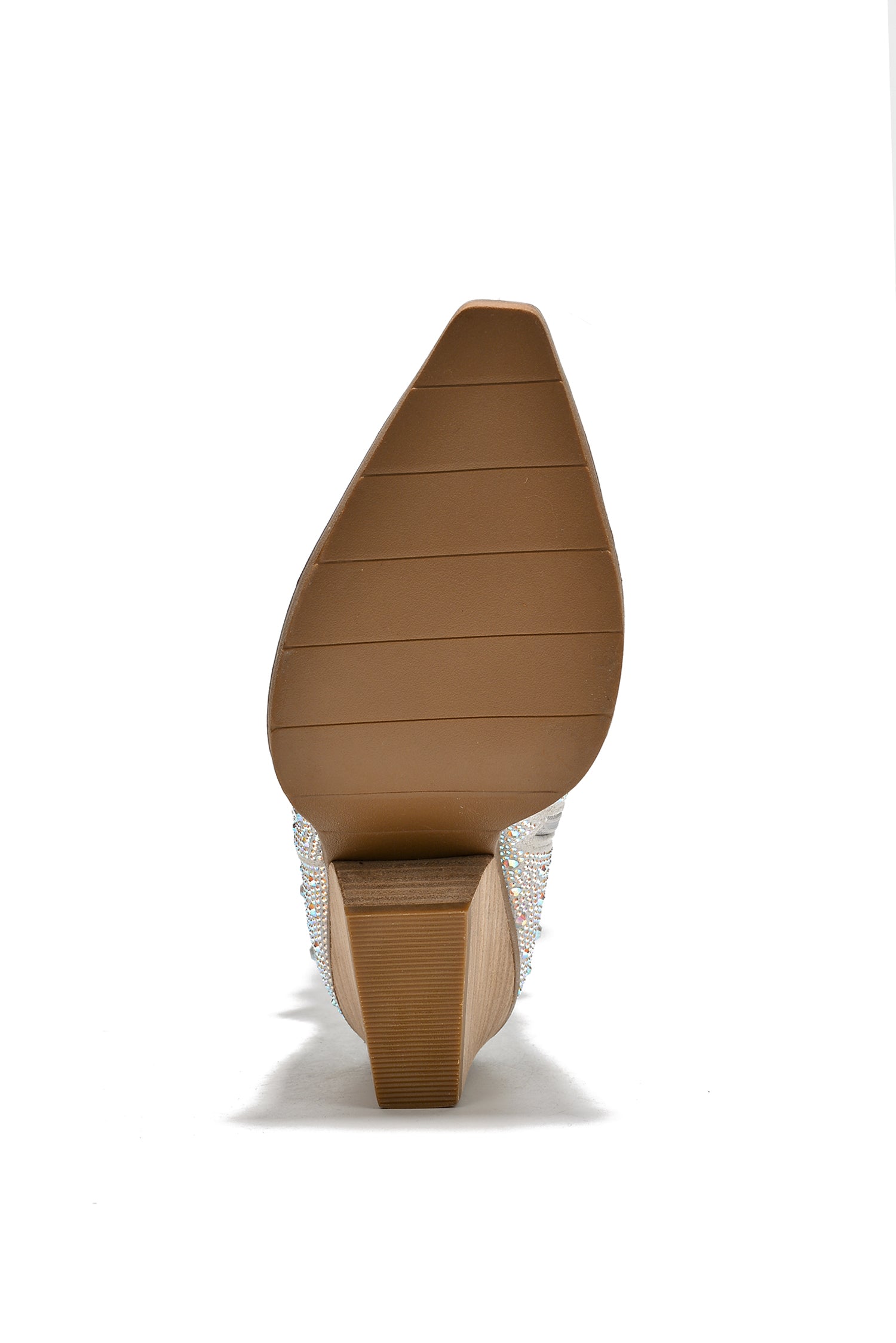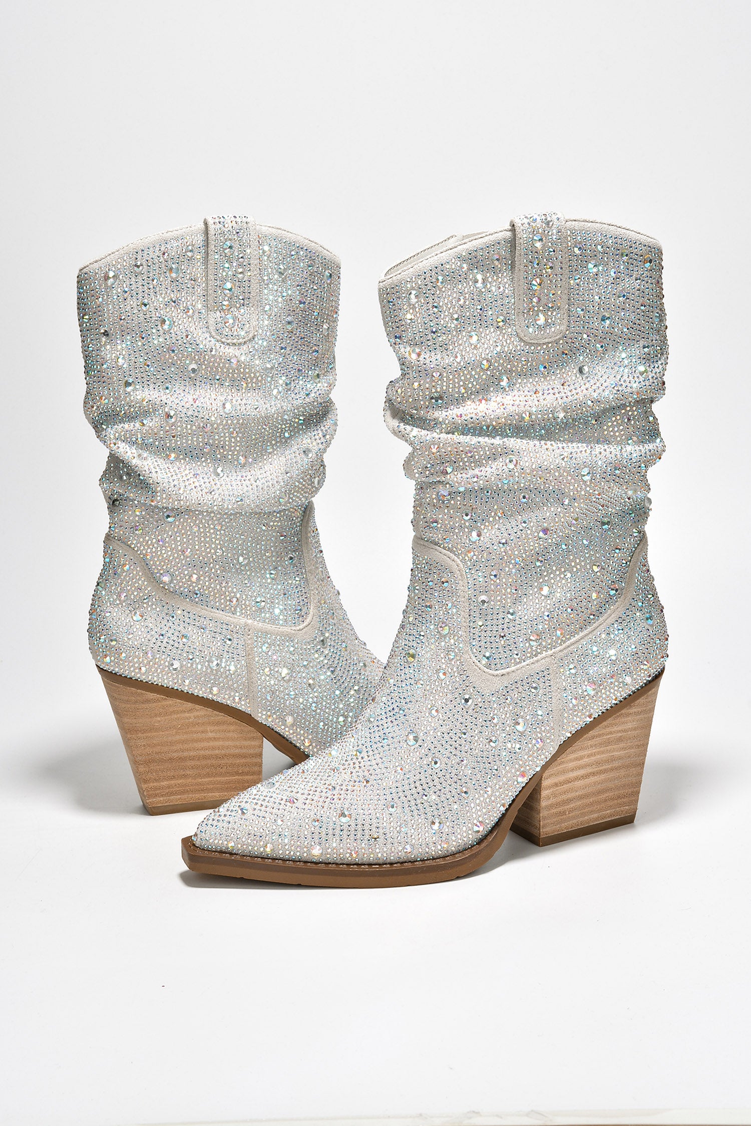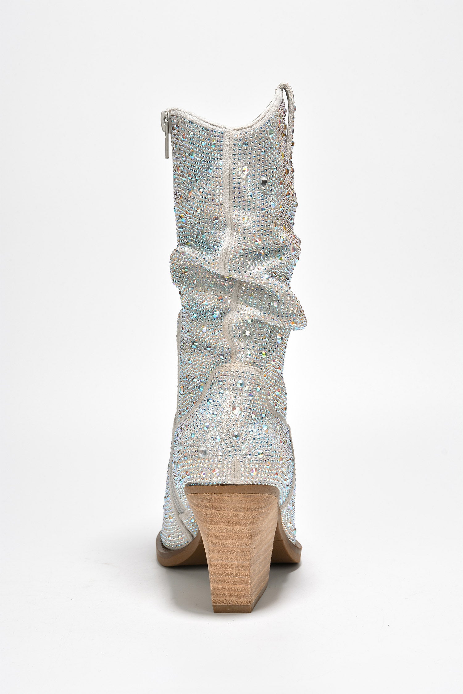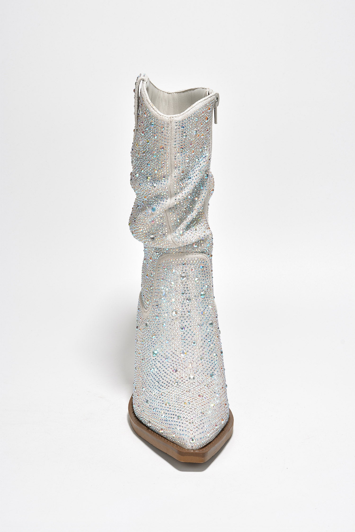 Jehanna Rhinestone Side Zipper Pointed Toe Slouch Booties - Silver