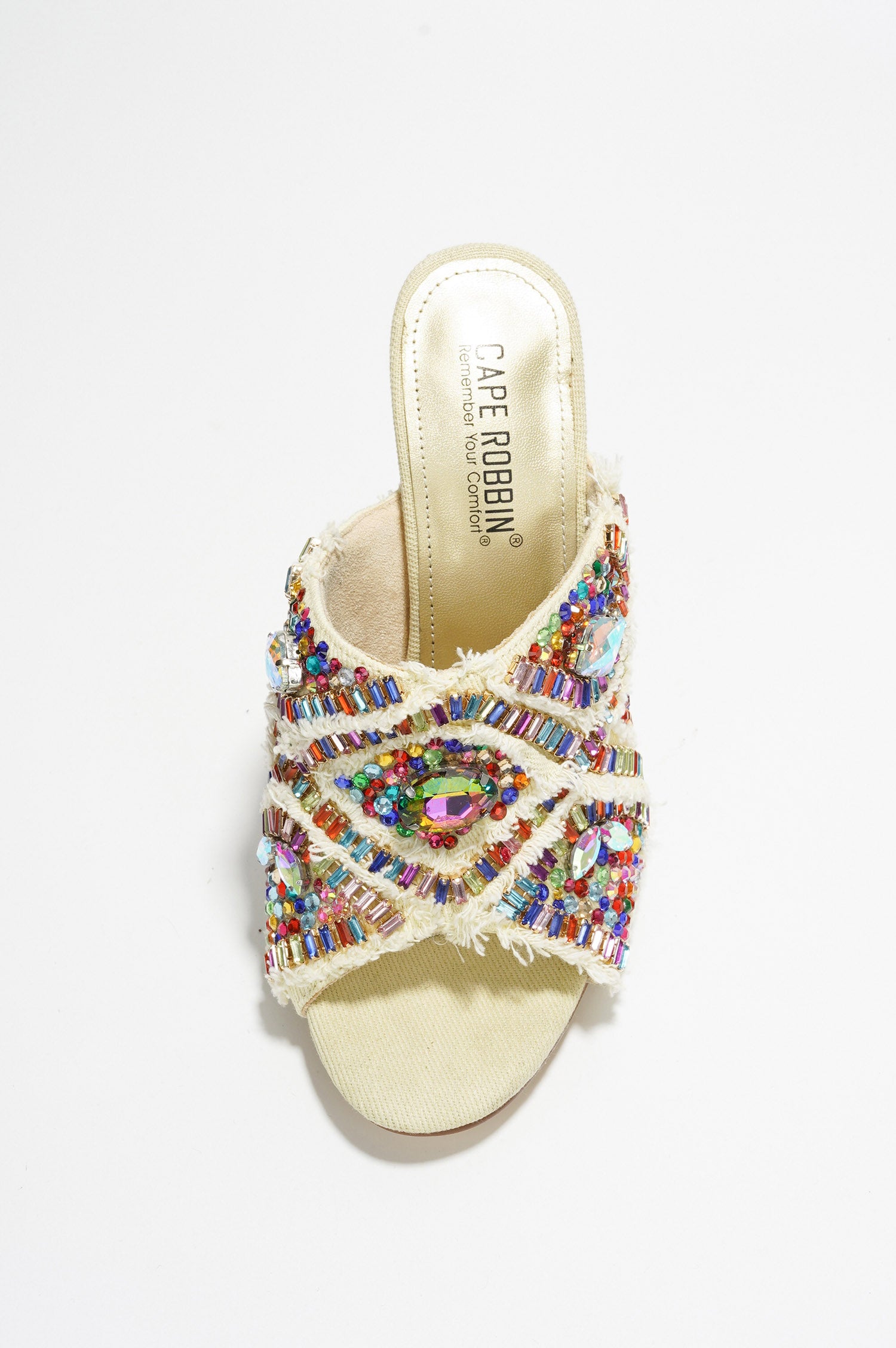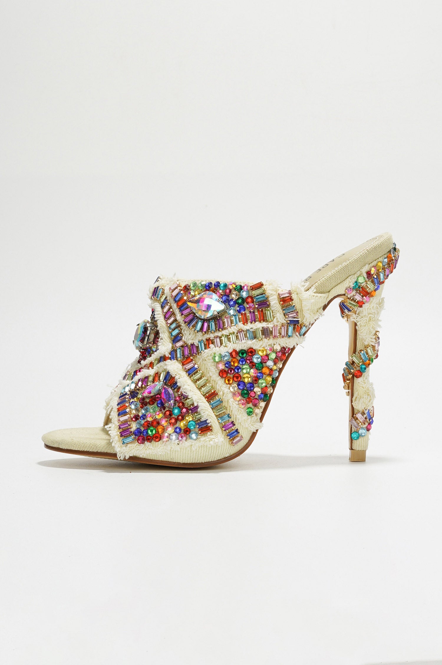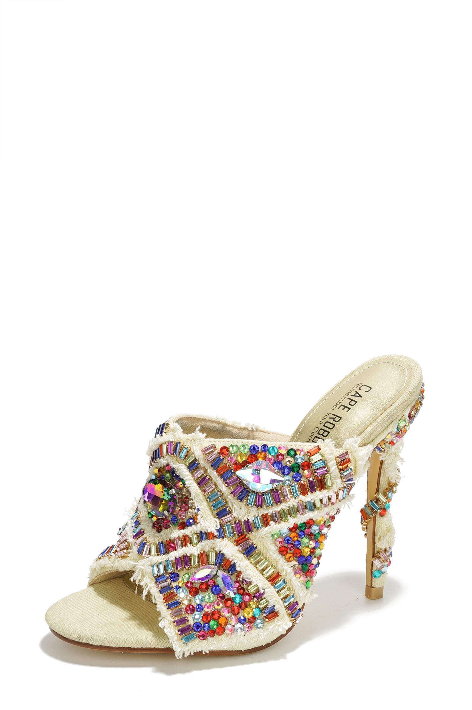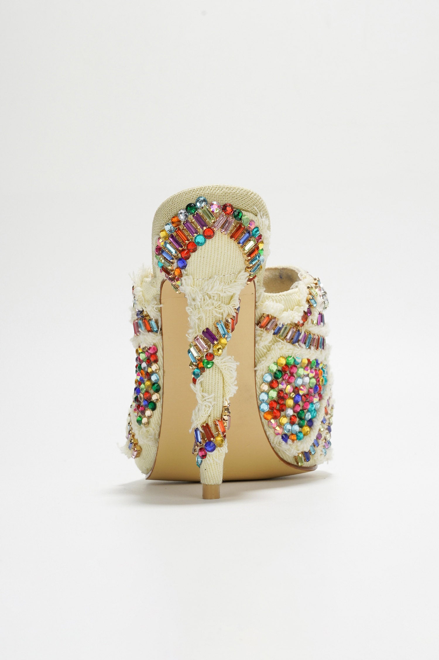 Adorned with colorful embellishments, these stunning heels add a splash of color and sparkle to any outfit, making them perfect for special occasions and glamorous events. The elegant open-toe design and sleek high heel offer a touch of sophistication, while the cushioned insole ensures comfort throughout your event. Versatile and bold, they pair effortlessly with evening gowns and cocktail dresses.