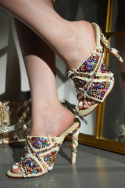 Jo Gem Embellished Heeled Mules - Multi-Color