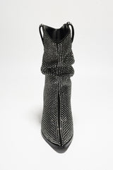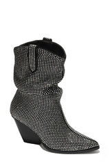 Karry Rhinestone Pointed Western Ankle Boots - Black