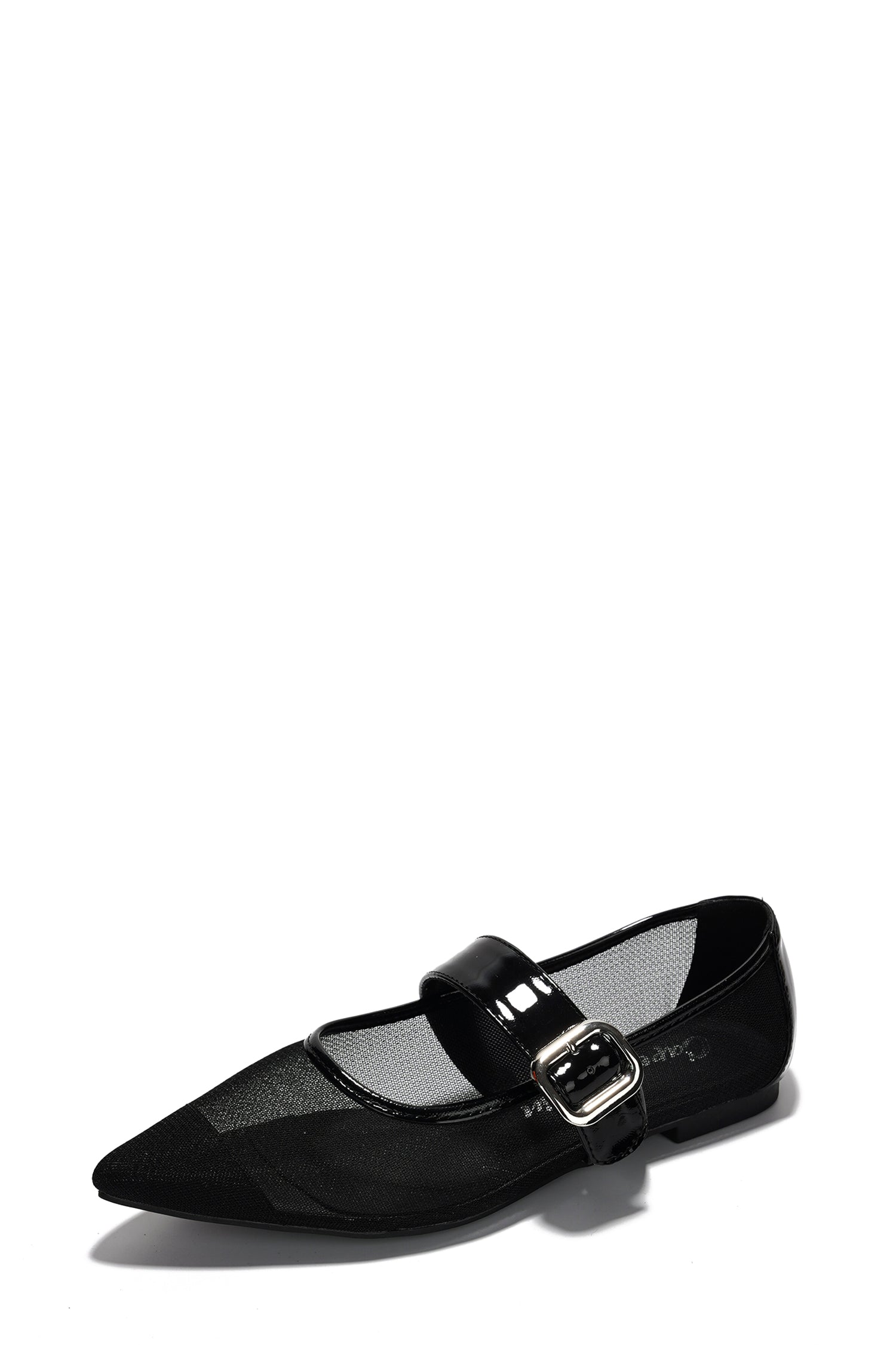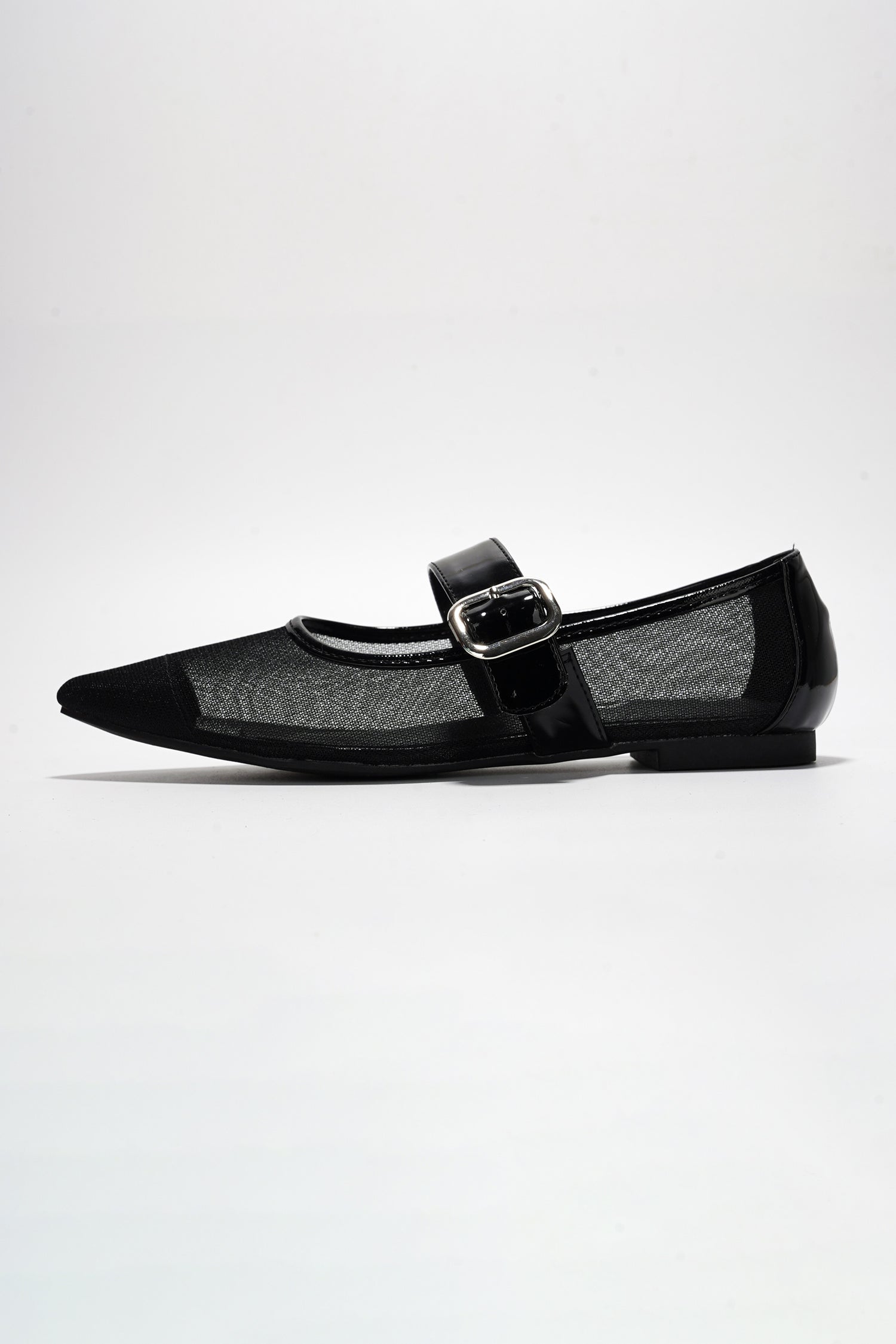 Upgrade your wardrobe with Linzy pointed toe flats featuring a stylish buckled vamp strap, available in both transparent and black mesh designs. Perfect for any casual or semi-formal occasion, these flats combine modern style with all-day comfort. The pointed toe adds a touch of elegance, while the adjustable buckle ensures a secure fit. Pair them with tailored trousers, jeans, or dresses for an effortless chic ensemble!