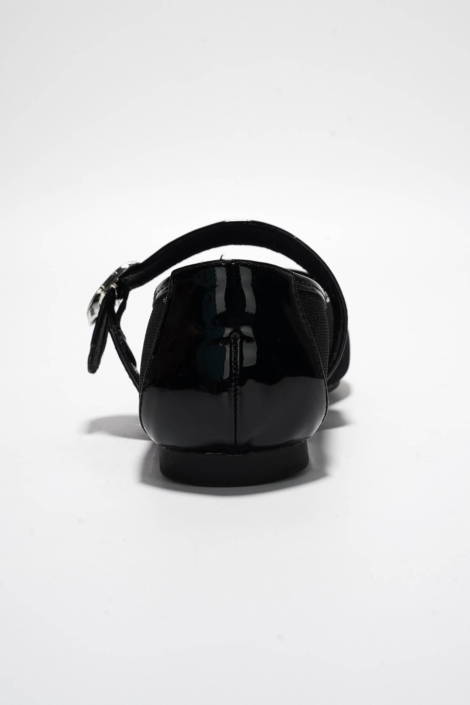 Linzy Buckle Strap Point Toe Ballet Flats - Black