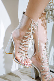 Lookey Clear Lace Up Rhinestone Ankle Boots