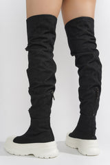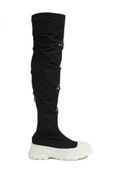 Looks Chunky Sole Thigh High Denim Sneakers - Black