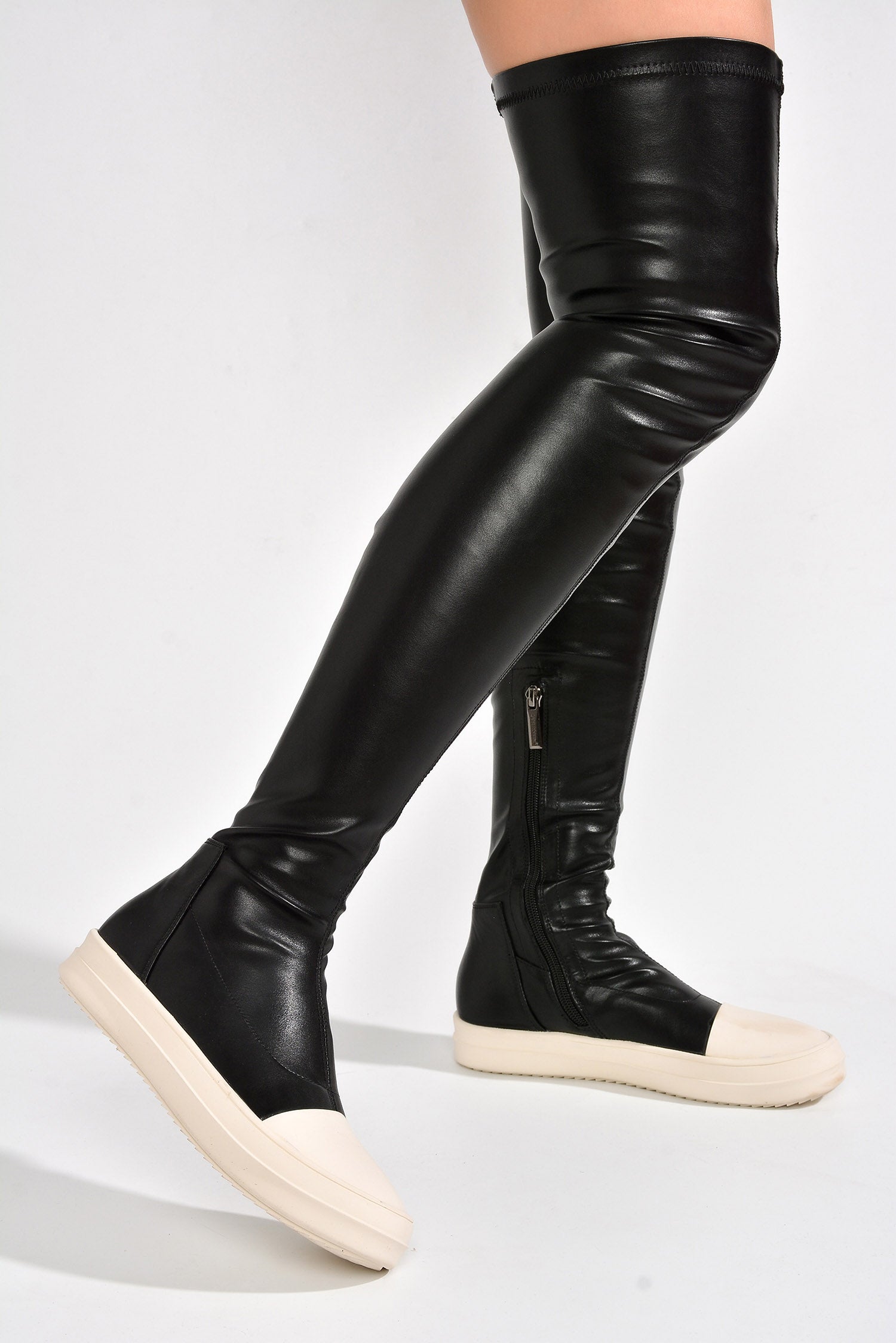 Lupita Thigh High Lug Sole Flat Boots - Black