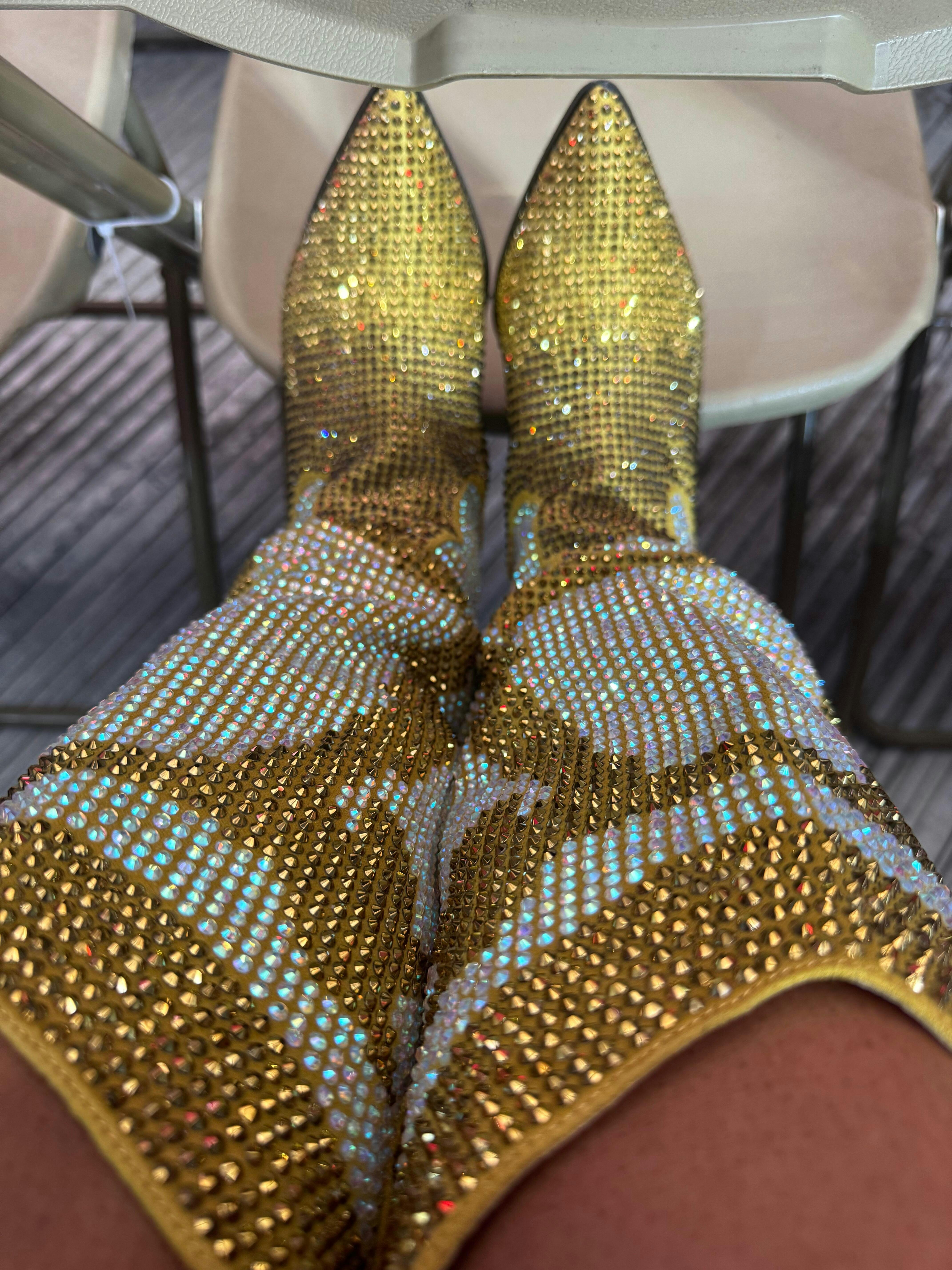 Malinde Rhinestone Embelished Western Inpired Knee High Boots - Gold