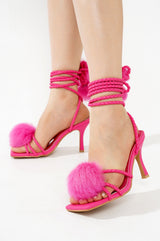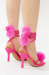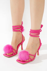 The Marje Pom-Pom Lace-Up Heels are a playful and vibrant addition to any shoe collection. Featuring fluffy pom-pom accents on the toe and wrap-around lace-up straps, these bold heels add a stylish, fun twist to any outfit. Whether you're heading to a party or spicing up a casual day out, these heels offer both fashion and comfort. Available in a range of eye-catching colors, including black, hot pink, blue, and brown, they seamlessly elevate your wardrobe with their unique charm.