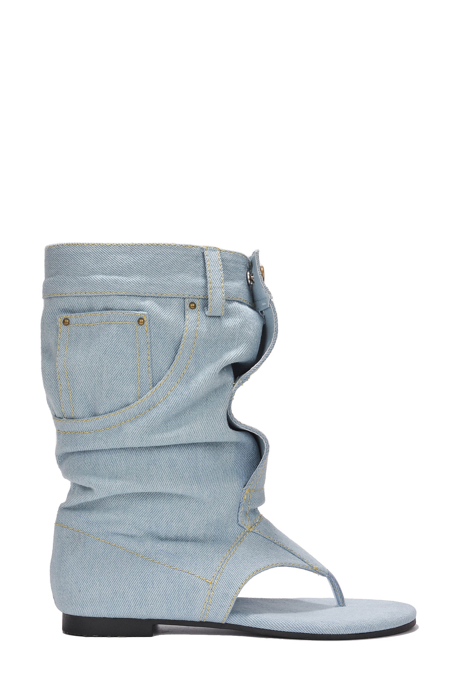 Matie Y2K Denim Slouchy Thong Sandal Boots - Denim