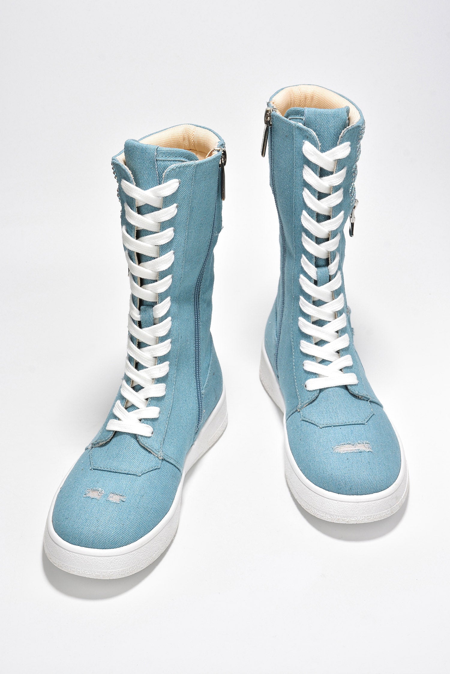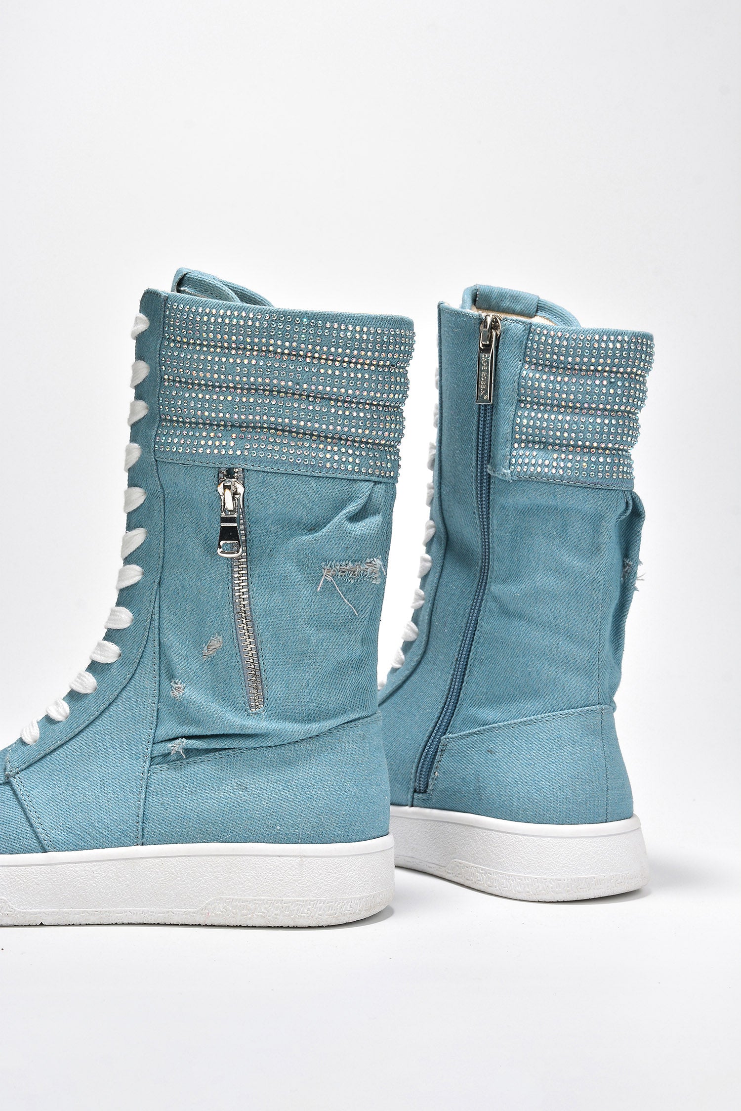 Megani Rhinestone Coated High Top Sneakers - Denim